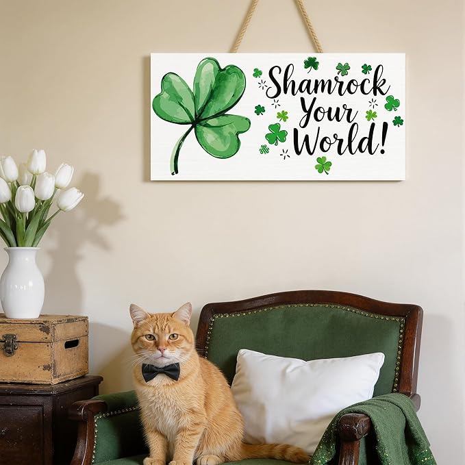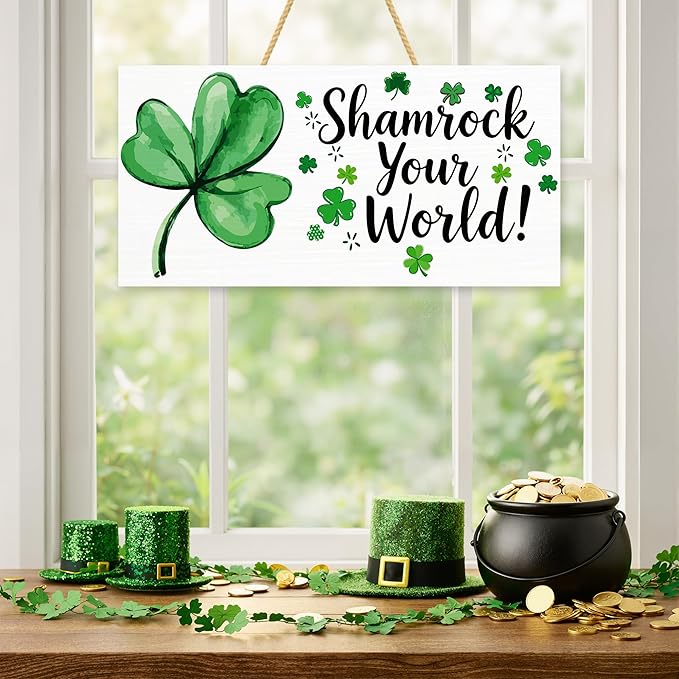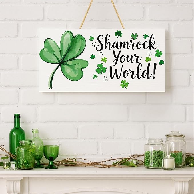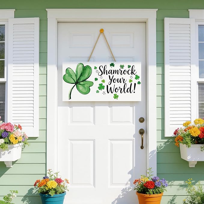 St Patricks Day Decorations - Hanging Wooden Sign for Wall Home Door Birthday | Shamrock Decorations Wood Wreaths Irish St Patty's Day Accessories Party Favors - St. Patrick's Day Decor