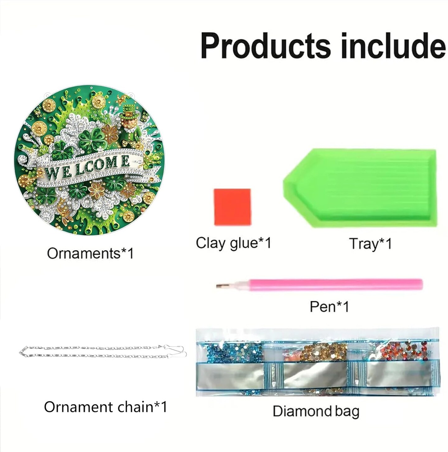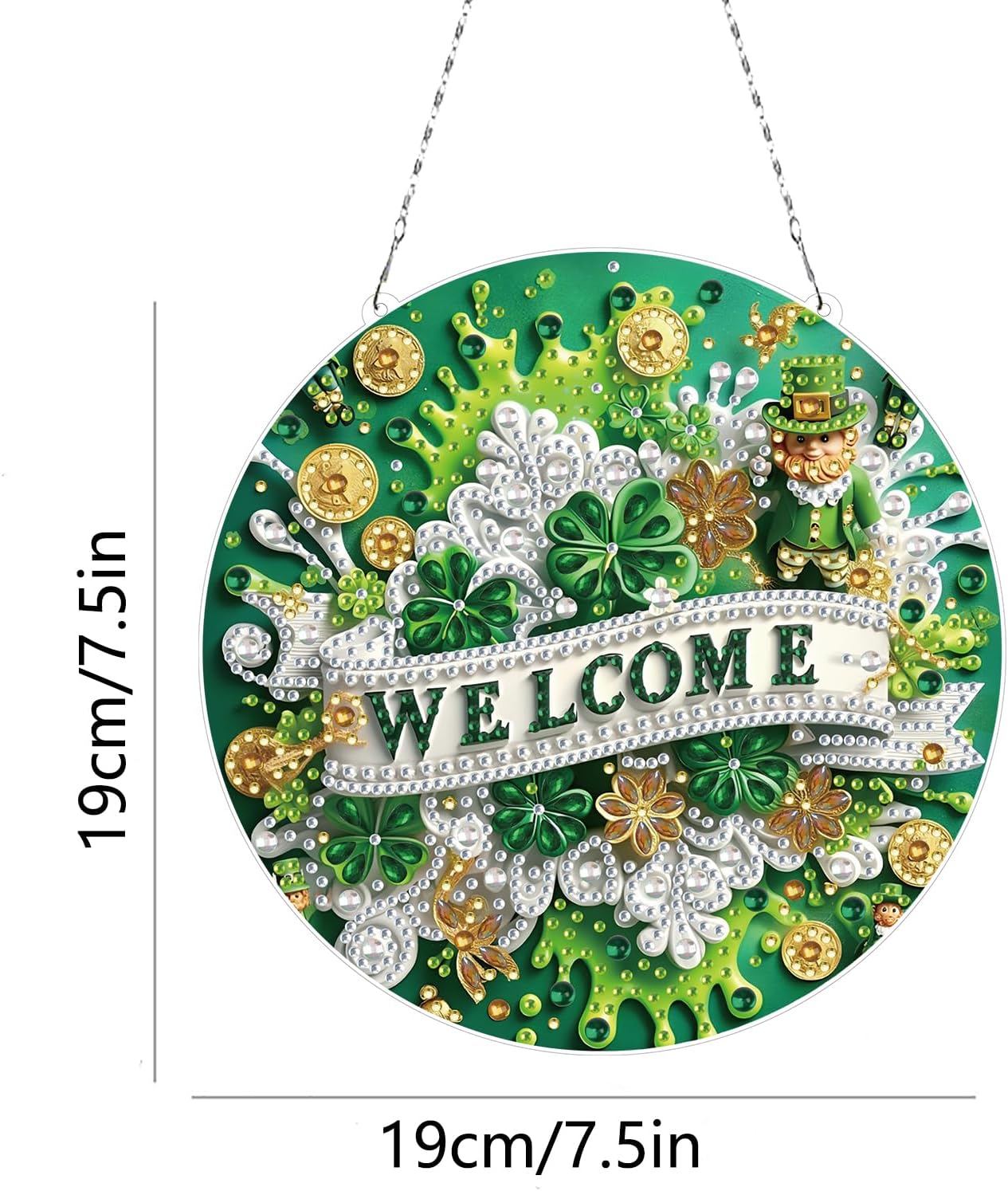 St. Patrick’s Day DIY Diamond Art Pendant – Single-Sided Dot Drill Hanging Ornament for Adults, Beginners, with Accessories, Home, Wall, Window, and Garden Decor
