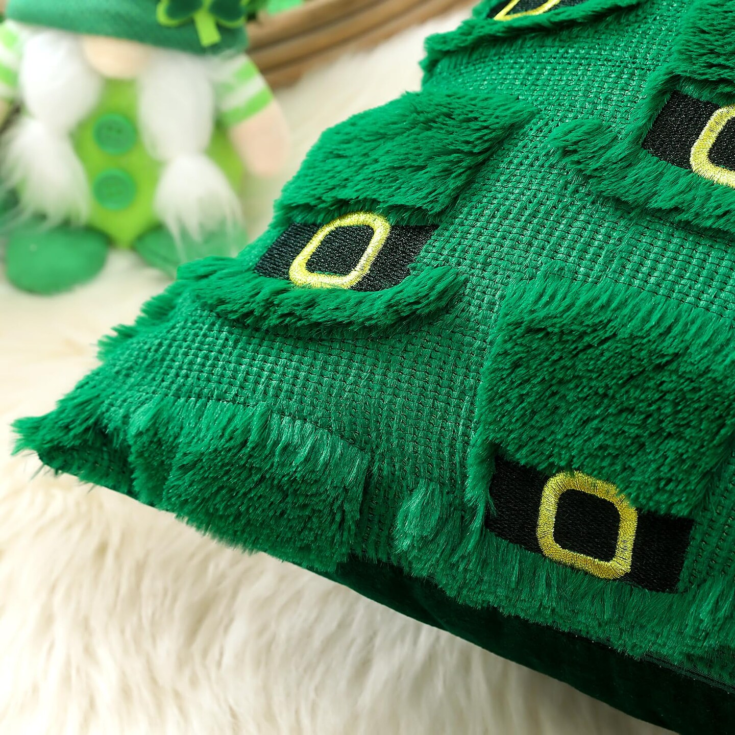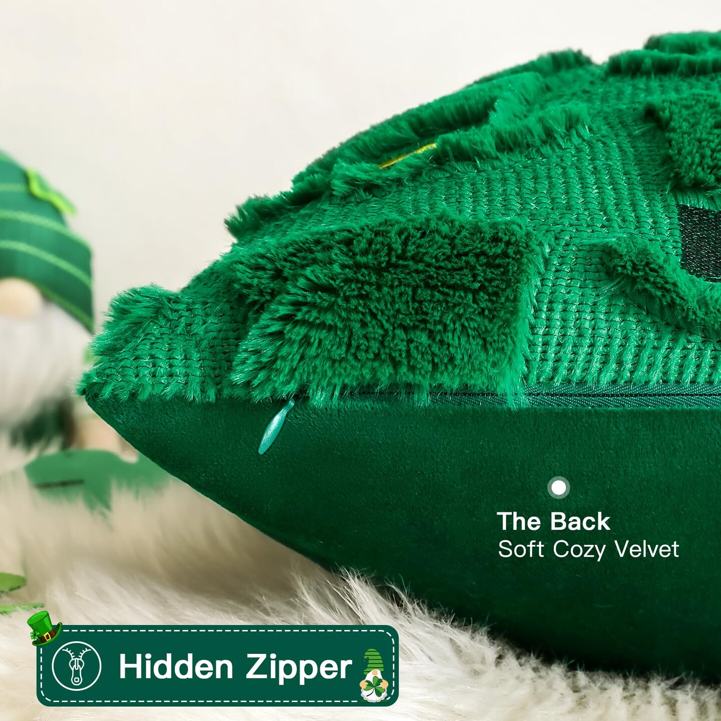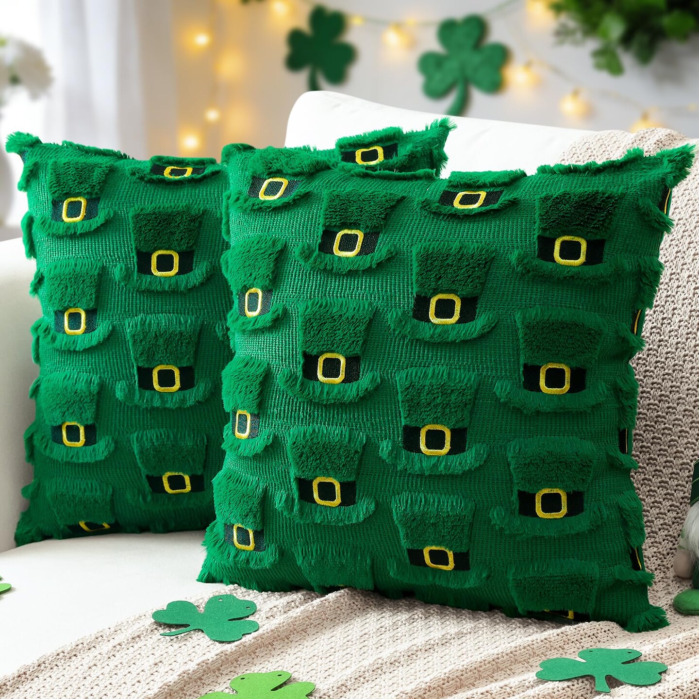 St Patricks Day Green Hat Pillow Covers 18x18 Set of 2 Decorative St Patricks Day Throw Pillow Cases Soft Plush Faux Fur Couch Cushion Case for Holiday Sofa Bed Room Home Decor-Green