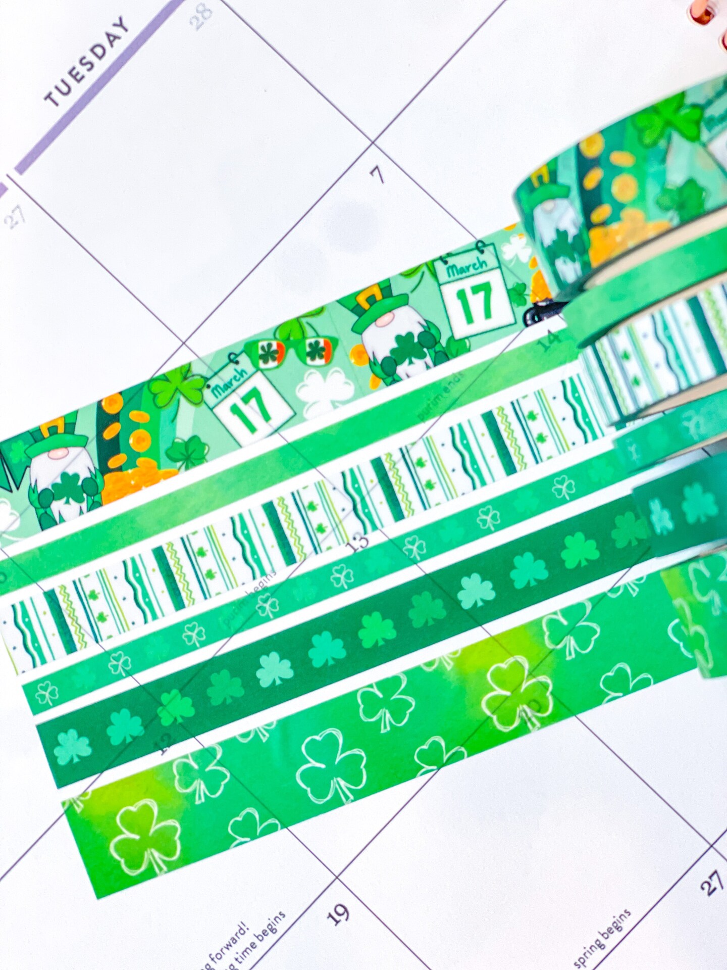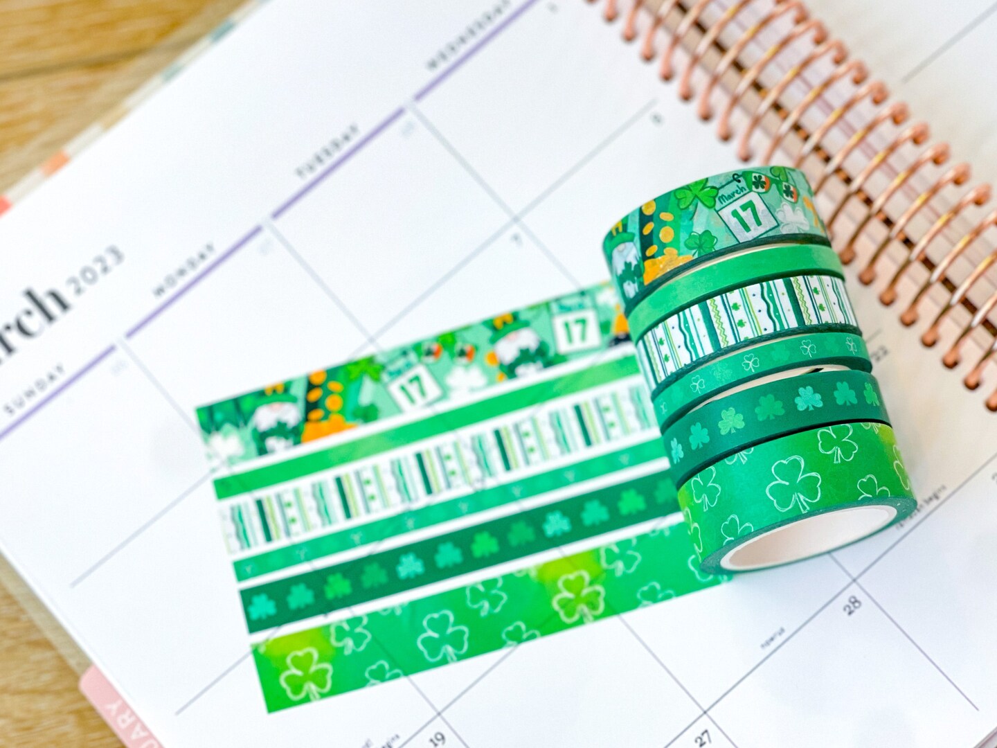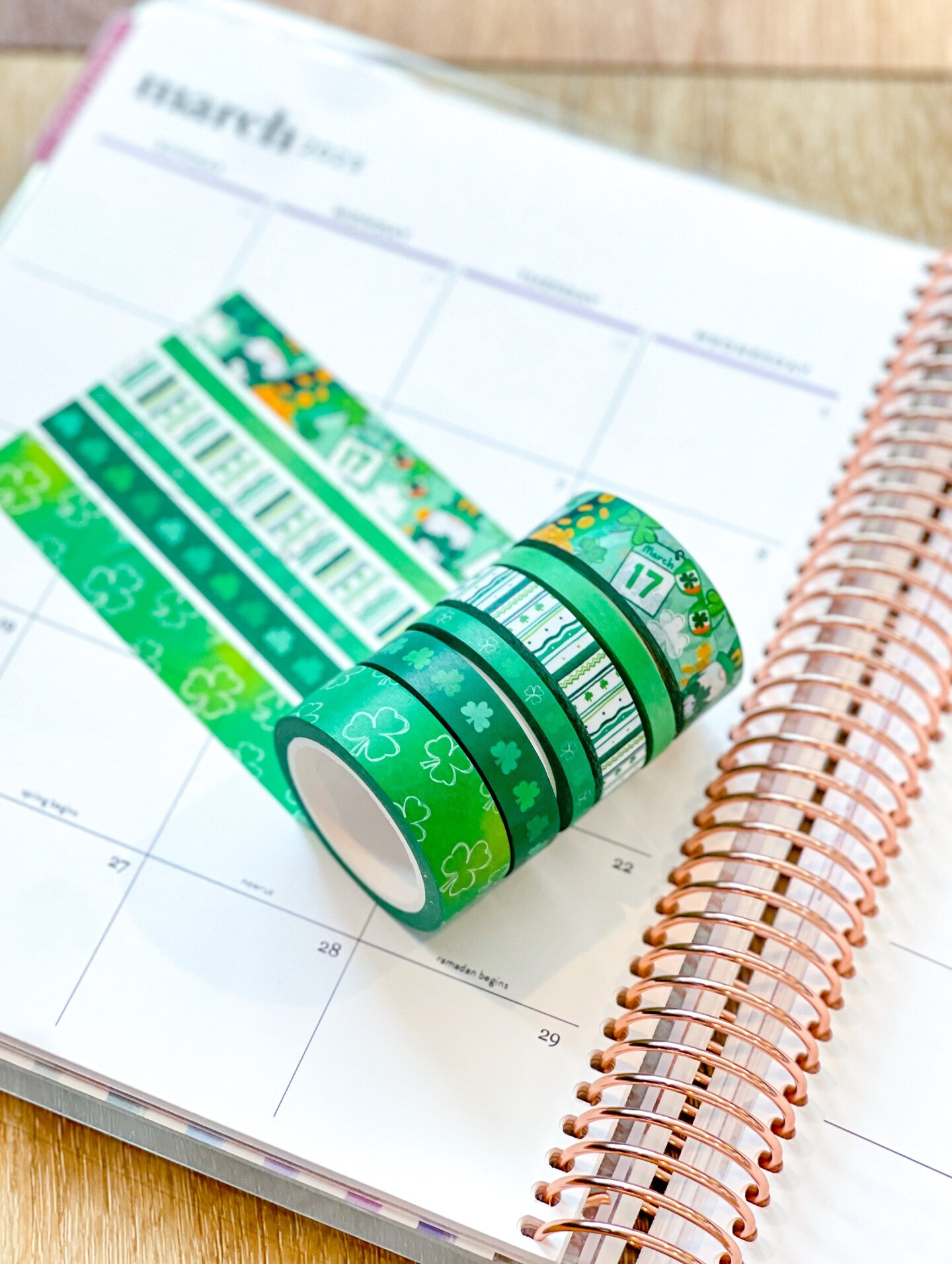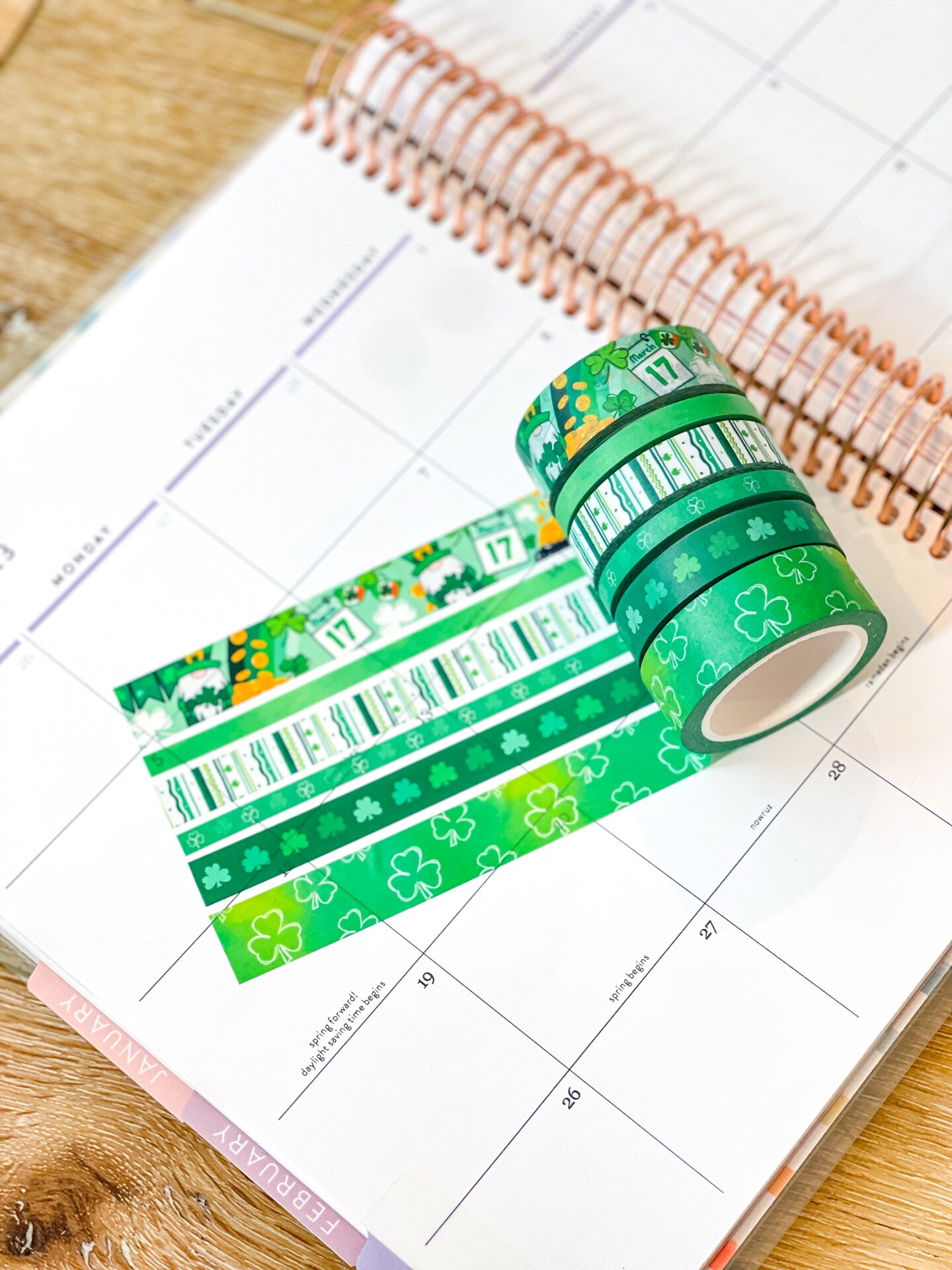 St Patricks Day Green Shamrocks Washi Tape Set (#W078)