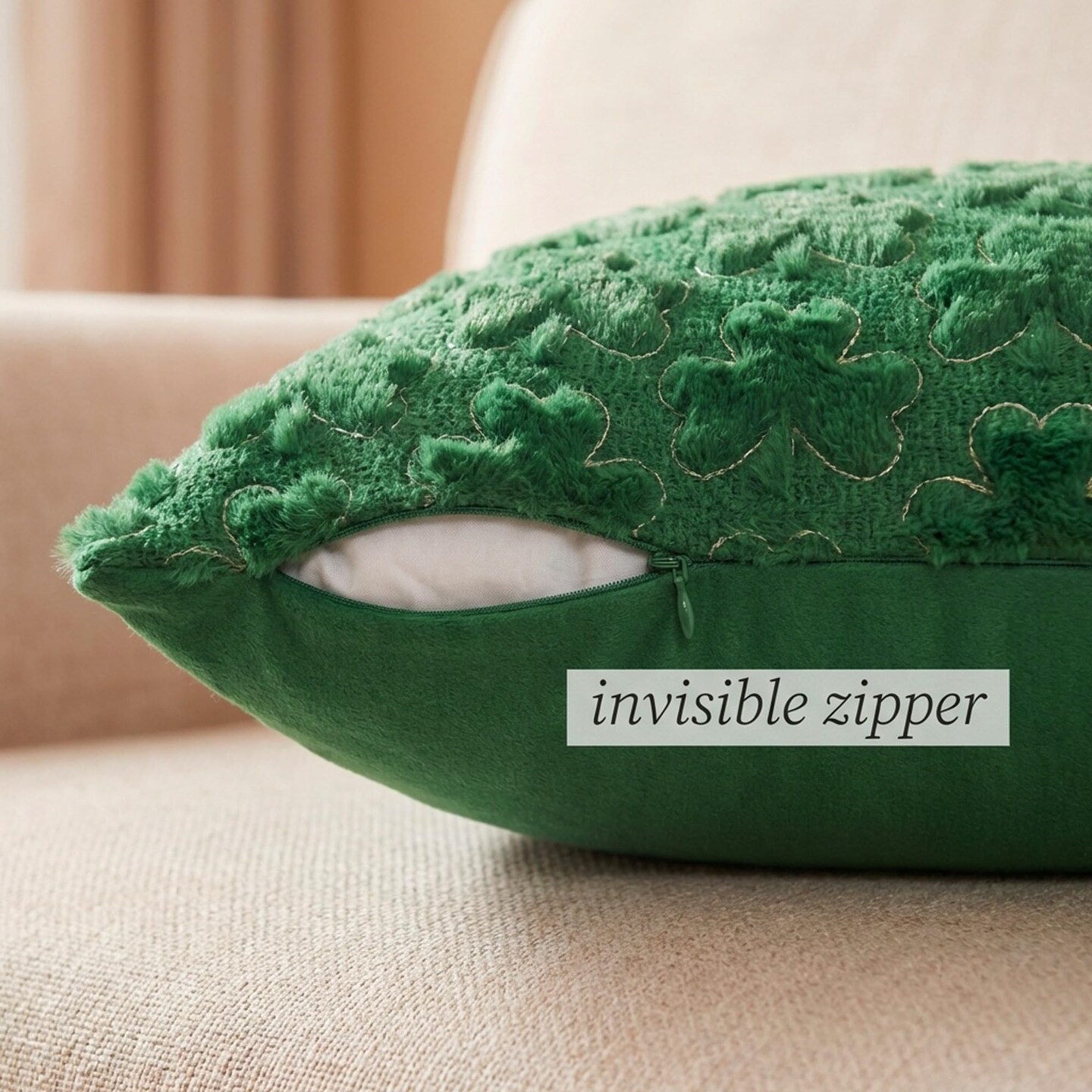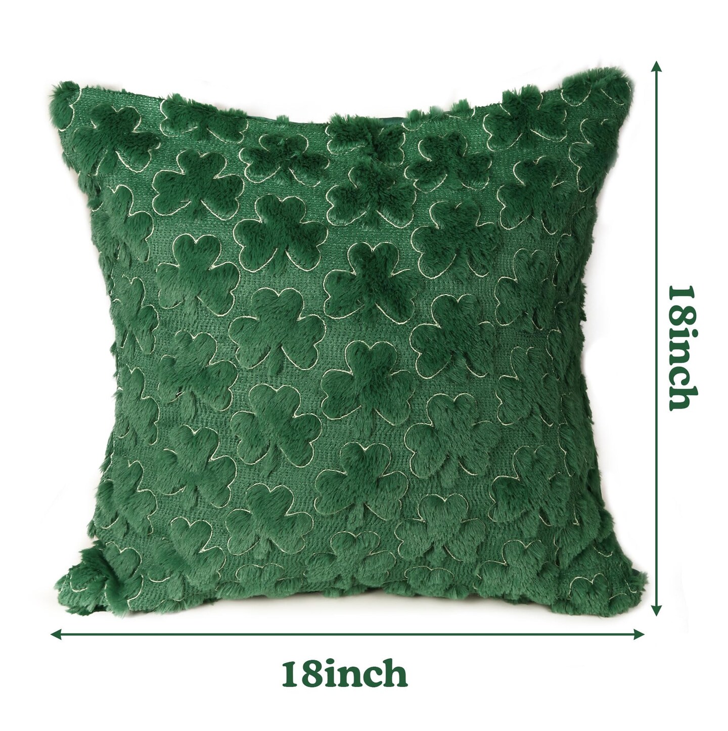 St Patricks Day Pillow Covers 18 x 18 inch Set of 2 3D Embroidered Shamrock Pillow Soft Plush Faux Fur St Patricks Day Decorations for SOFE Bedding Holiday