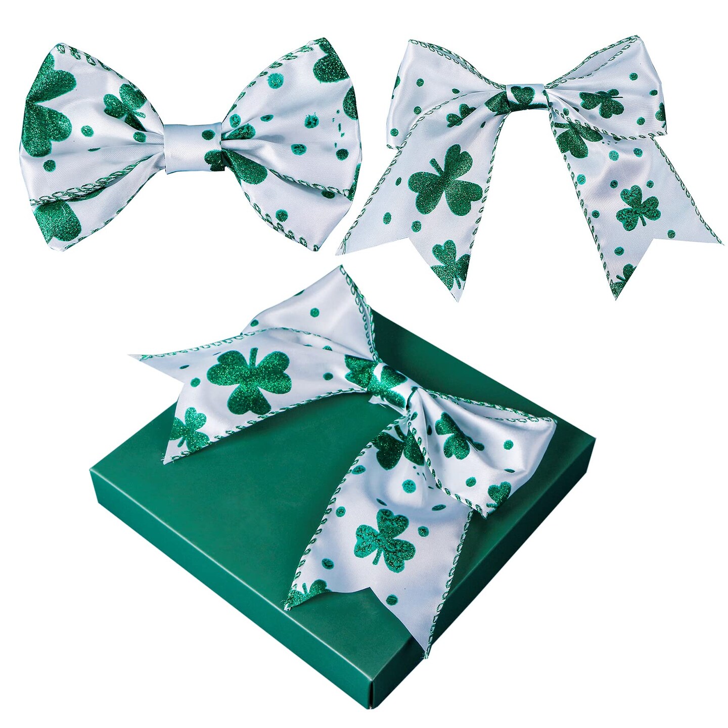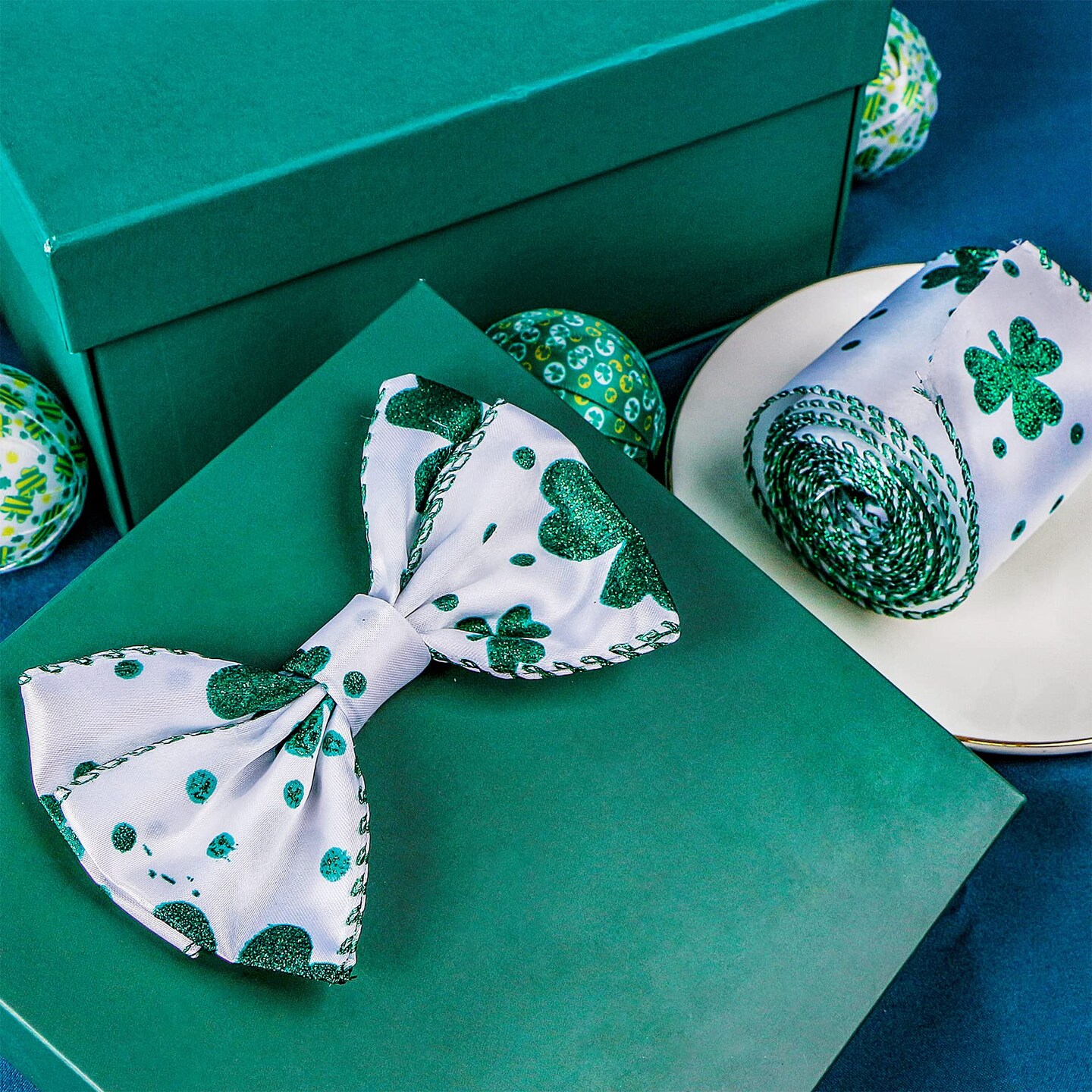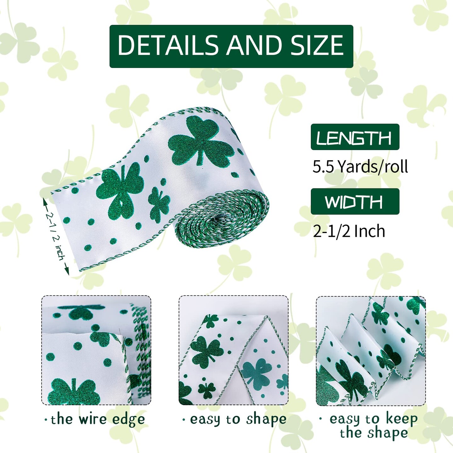 ST Patricks Day Shamrock Ribbon Clover Satin Wired Edge Ribbon (2-1/2" x 5.5 Yards)