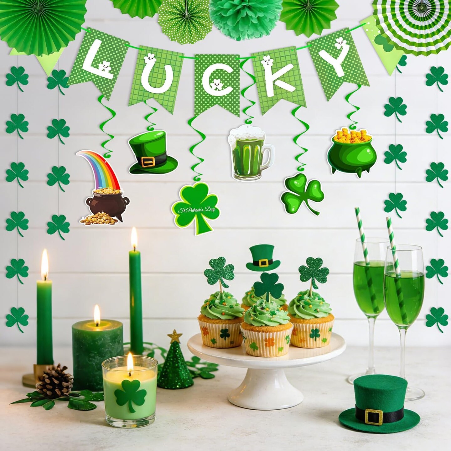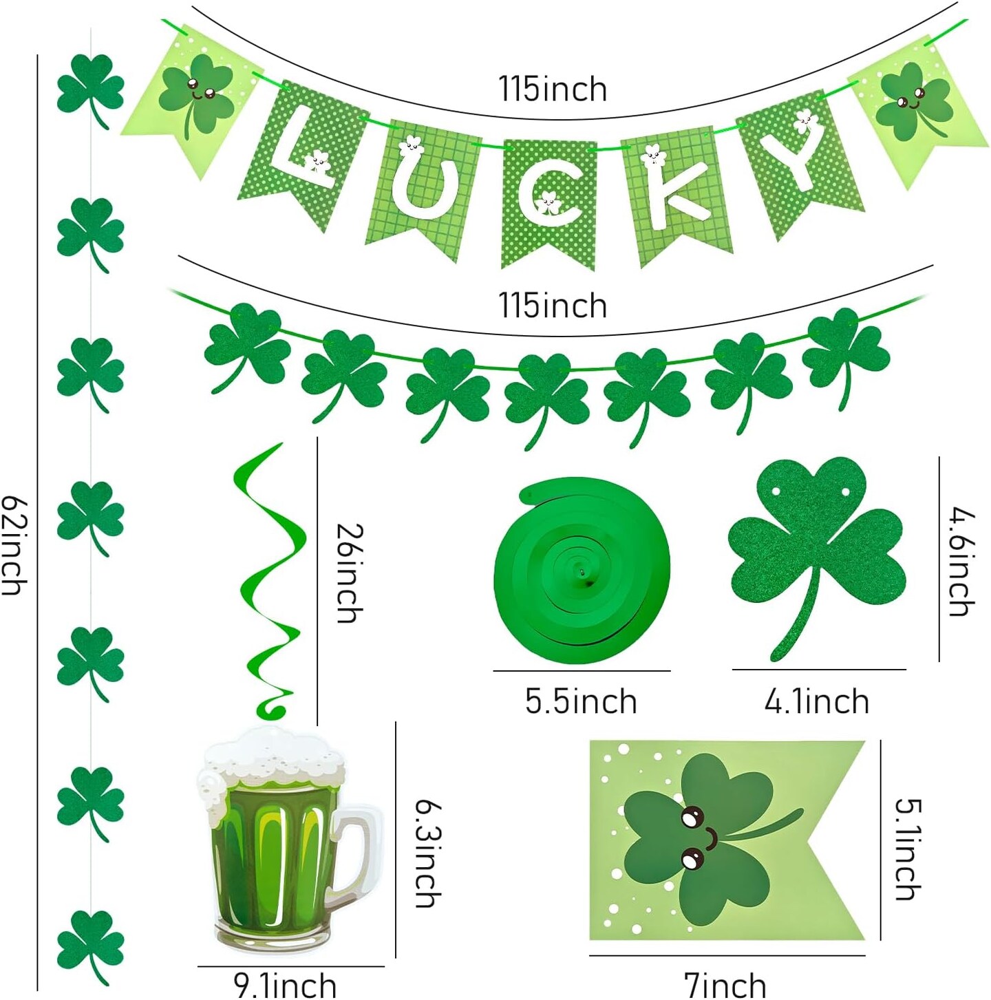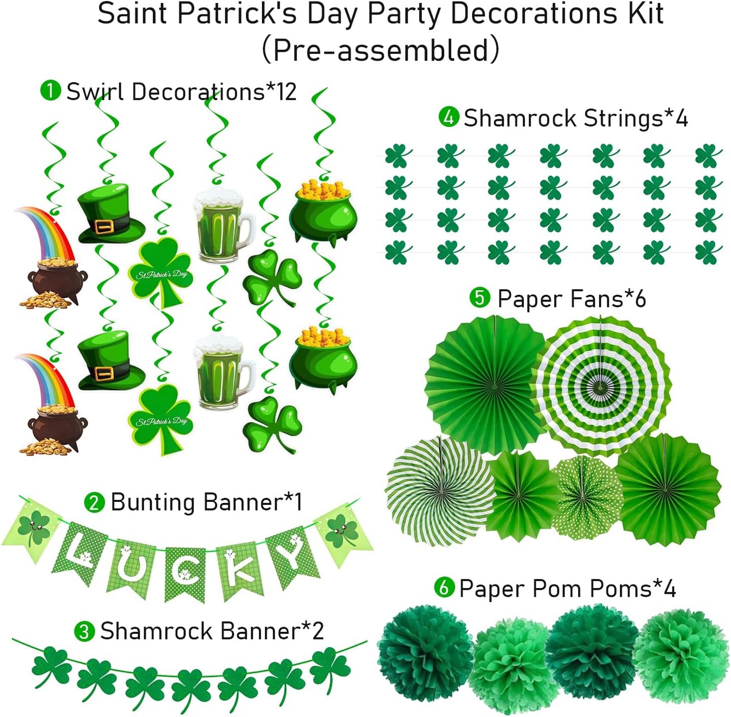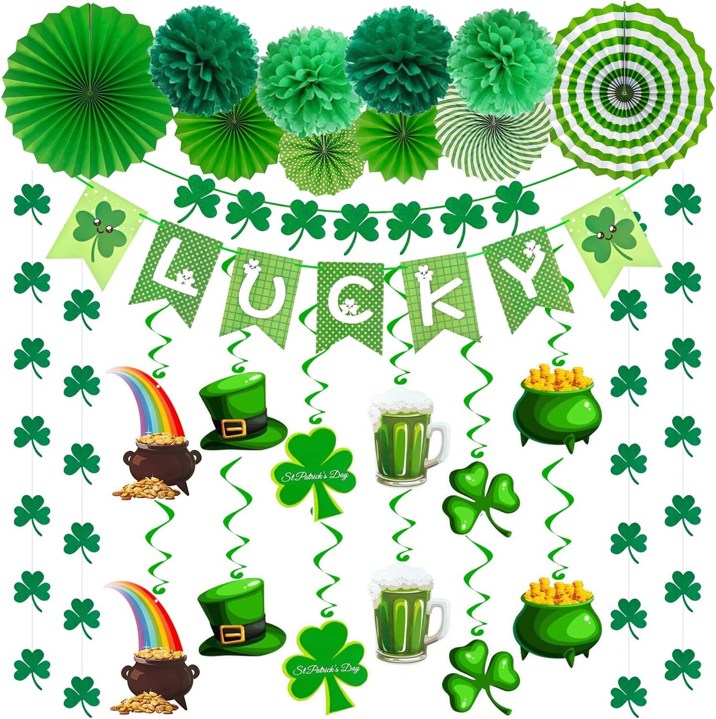 St. Patrick’s Party Supplies: 41-Piece St. Patrick’s Day Decorations Set – Pre-Assembled Banners, Shamrock Garlands & Hanging Swirls for Home, Office & Classroom