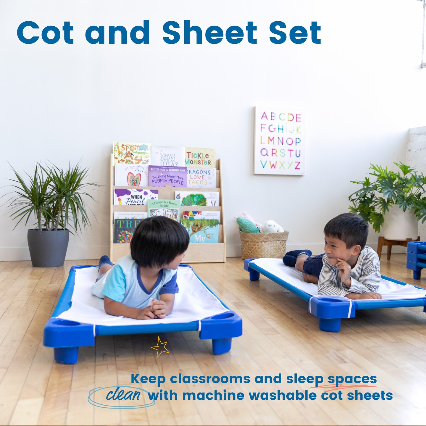 Stackable Kiddie Cot with Sheet, Standard Size, Classroom Furniture