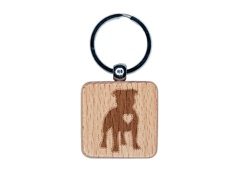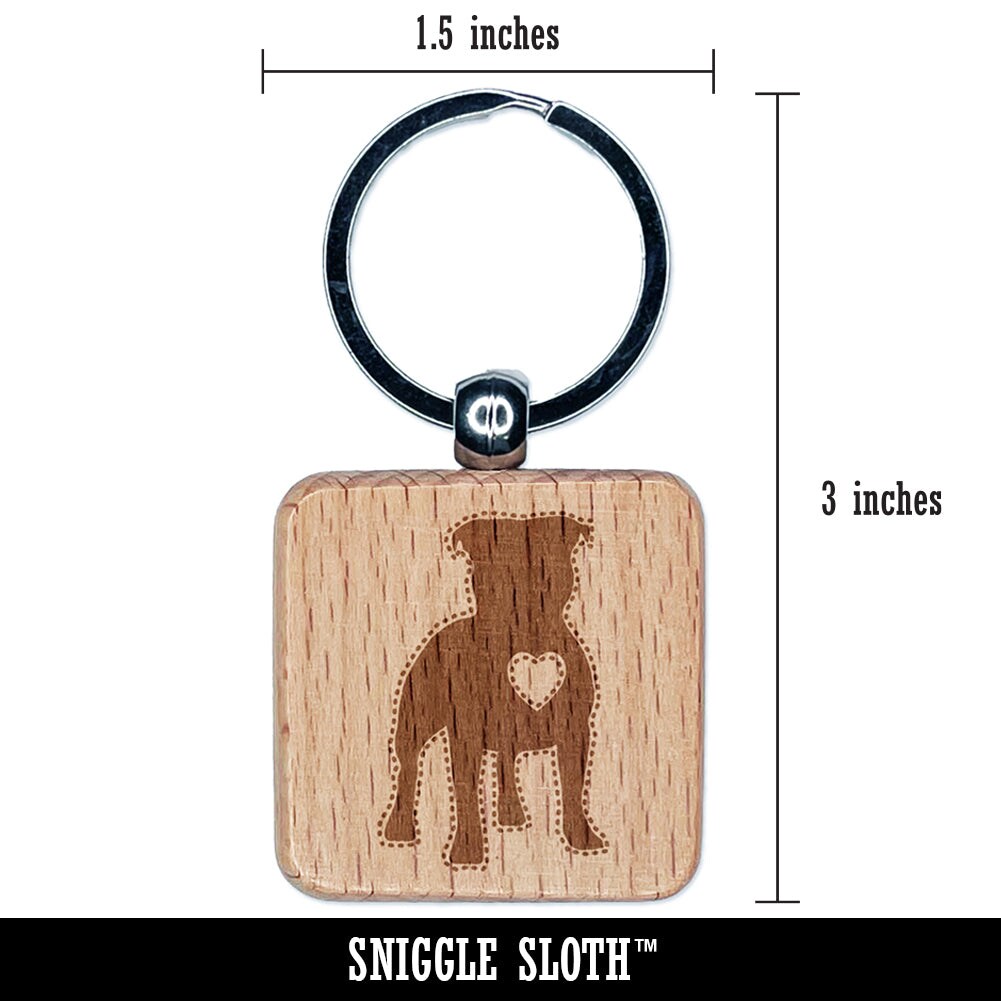 Staffordshire Bull Terrier Dog with Heart Engraved Wood Square Keychain Tag Charm