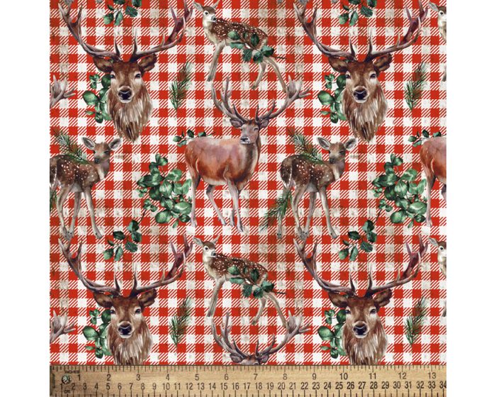 Stag and Doe Gingham Cotton Fabric | By the Yard | Sewing and Crafting | 44 inches wide