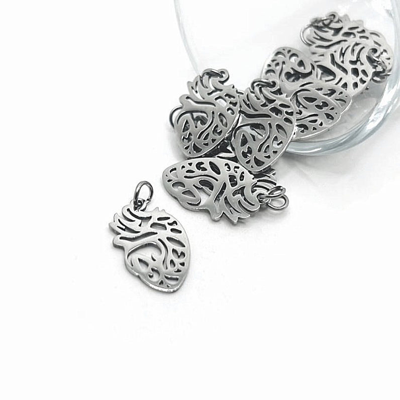 Stainless Steel Anatomical Heart Pendant, 20x12mm