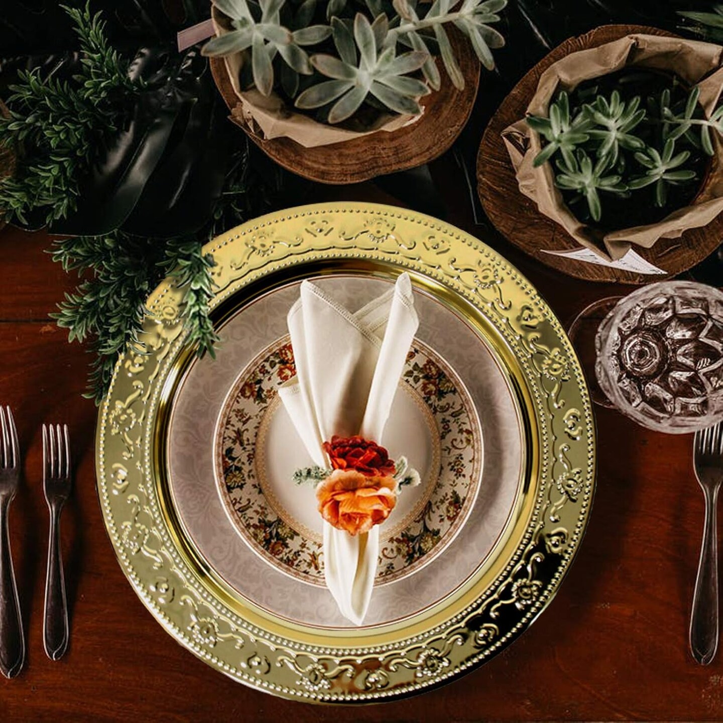 Stainless Steel Charger Plates, 6Pcs Gold Dinner Plate Chargers Round Server Ware