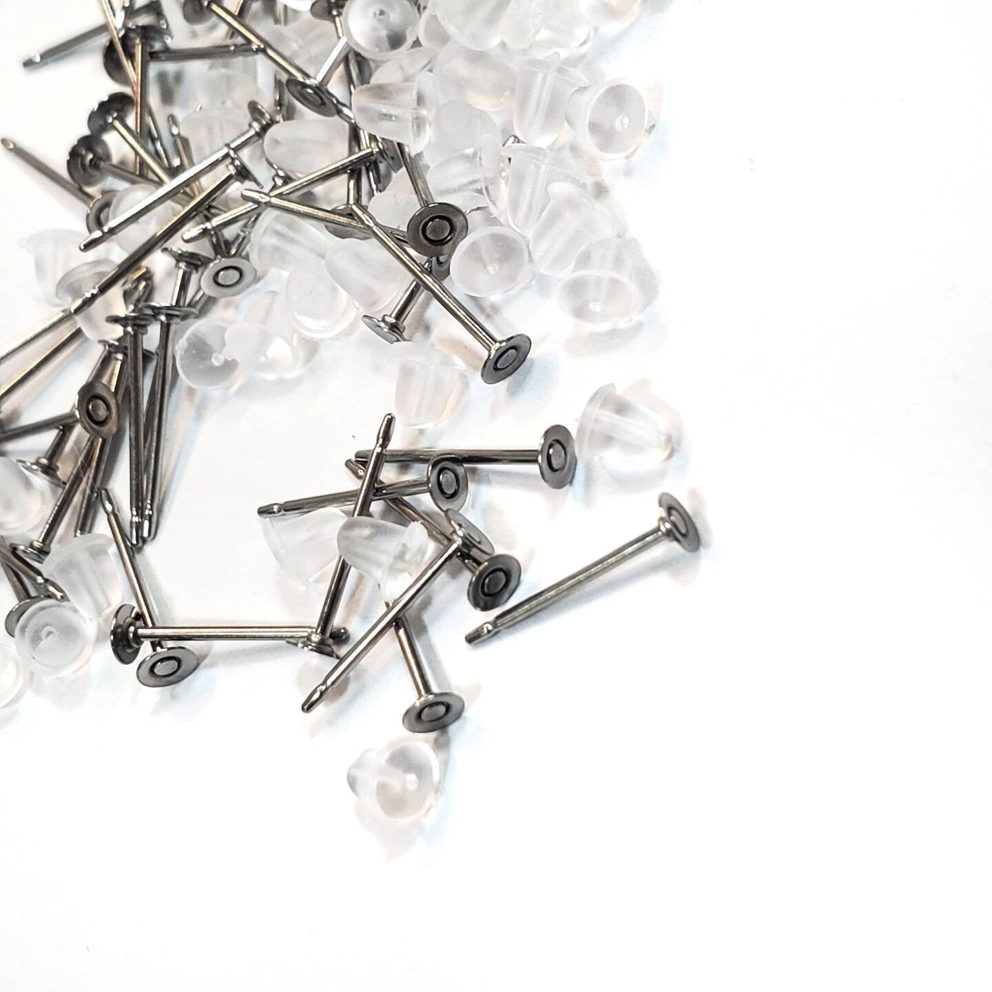 Stainless Steel Stud Earring Posts 3mm with Plastic Back Pads 7/16long | Resin Earrings Supplies