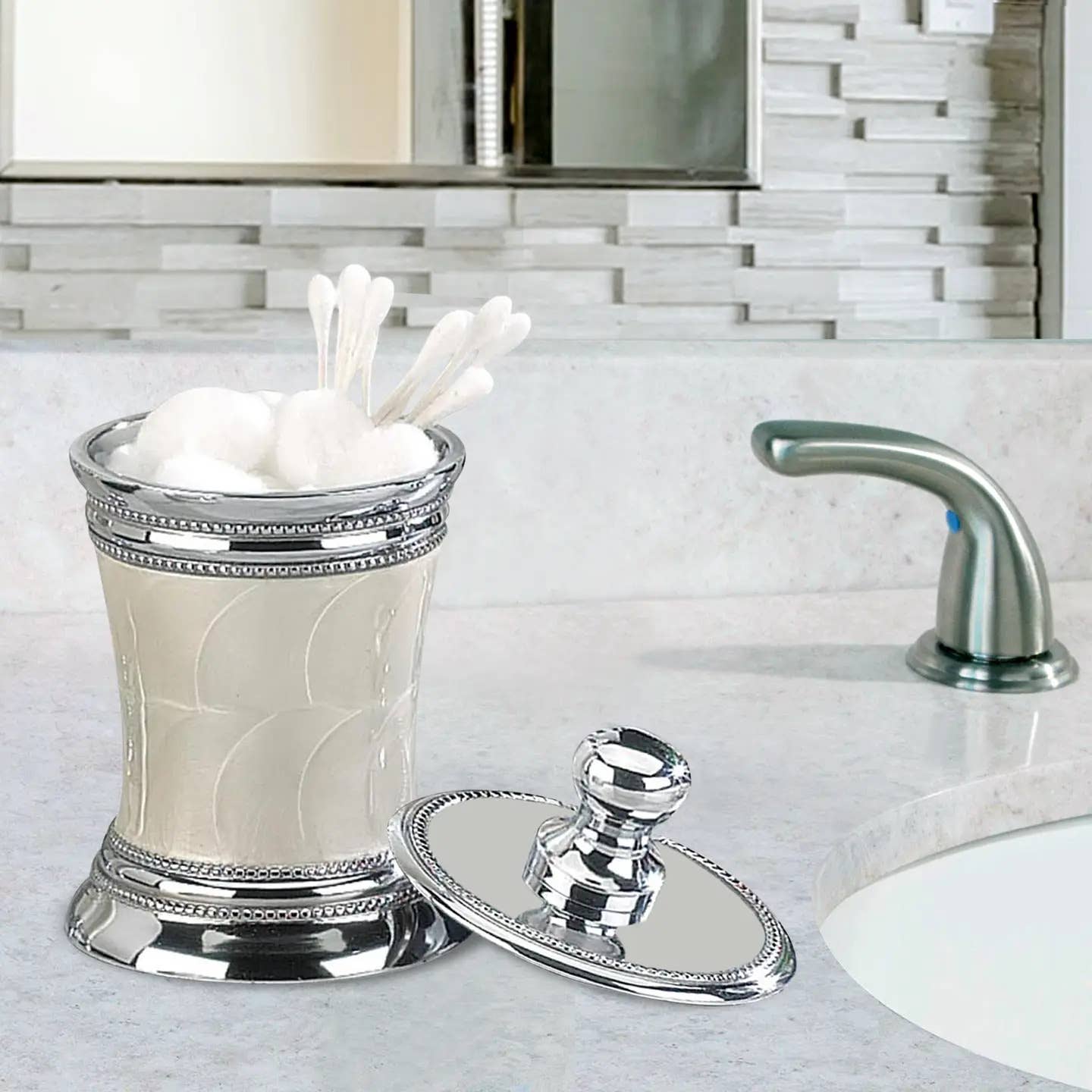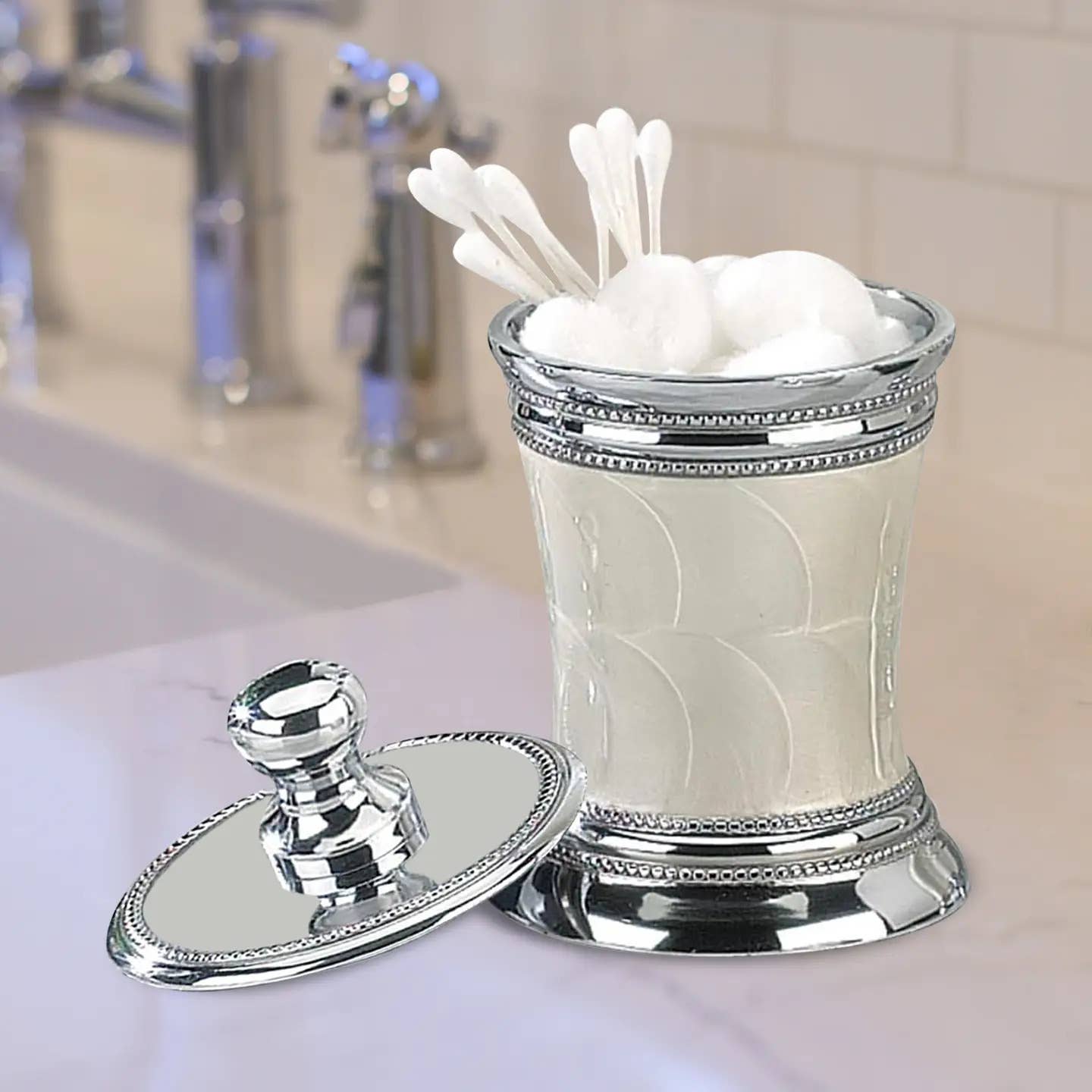 Stainless Steel Vanity Jar | Stylish Storage for Cotton Swabs,Sponges & Bath Salts | Decorative Canister for Bathroom,Bedroom | White