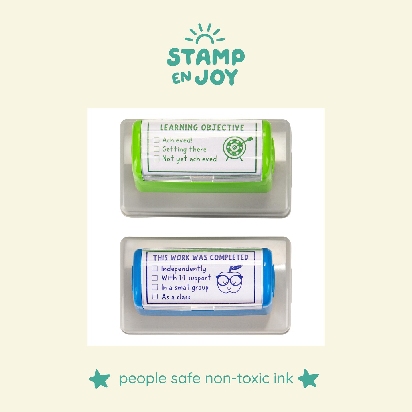 Stamp Enjoy - 2 Self-Ink Flash Stamp Set, Multicolor Teacher Stamps, Checkbox Grading Stamps, Pre-Inked