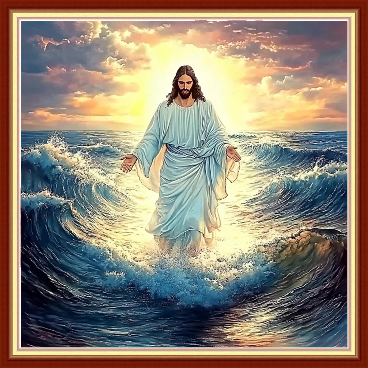 Stamped Cross Stitch Kit for Beginners – Jesus at Sea 11CT Pre-Printed 18x18 Inch Needlepoint Embroidery DIY Kit for Adults