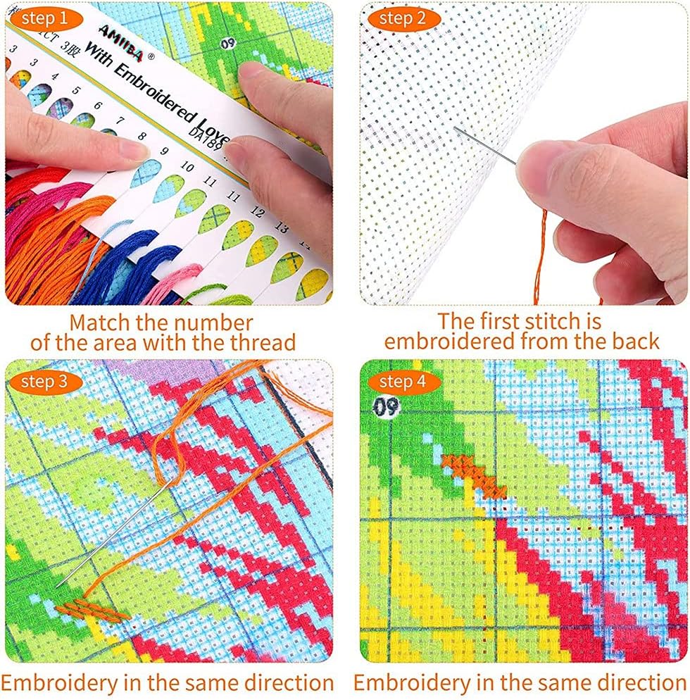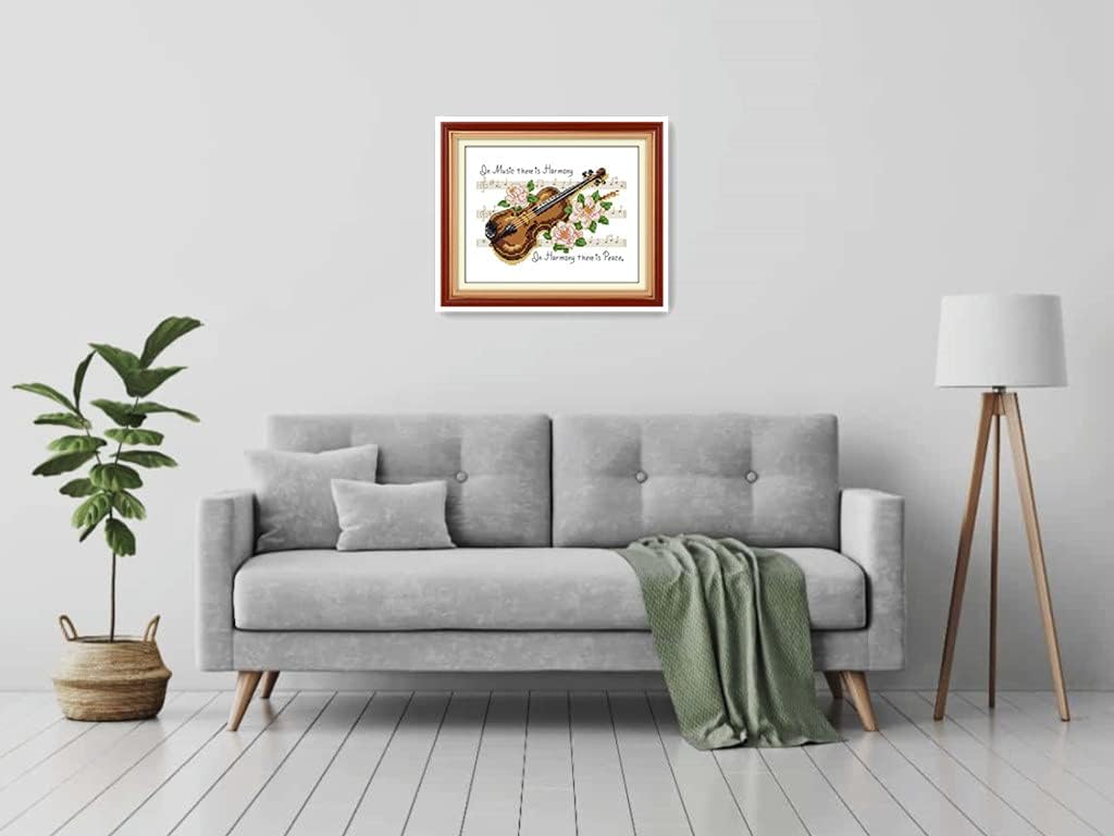 Stamped Cross Stitch Kit – “Music: There is Harmony, Harmony There is Peace” 11CT DIY Embroidery, Violin Design, 12.5×9.4 Inch