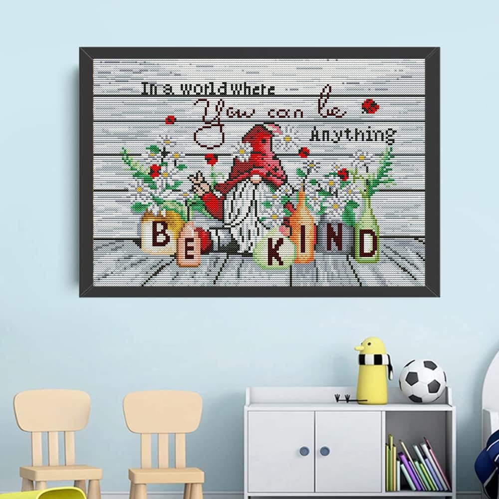 Stamped , Gnome Counted Cross Stitch Kits for Adults Beginners,Full Range of Cross-Stitch Stamped Kits Needlecrafts for Home Wall Decor Patterns