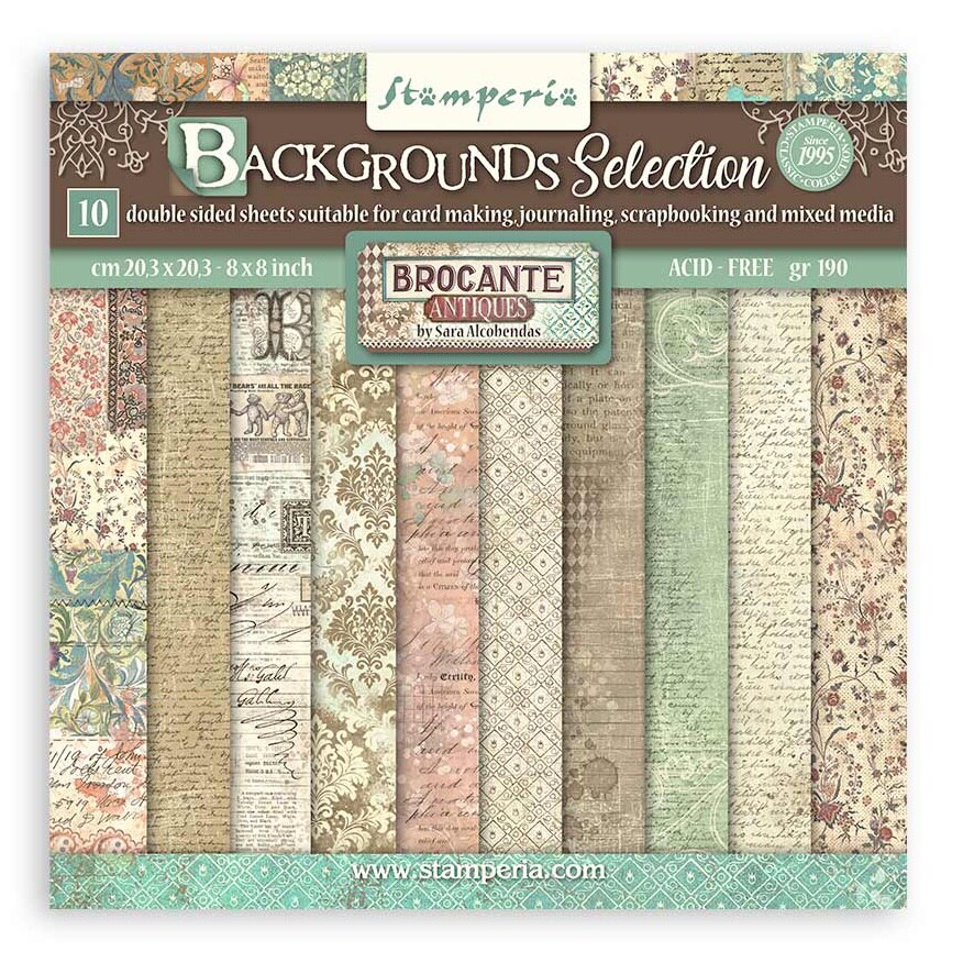 Stamperia Backgrounds Double-Sided Paper Pad 8"X8" 10/Pkg-Brocante Antiques