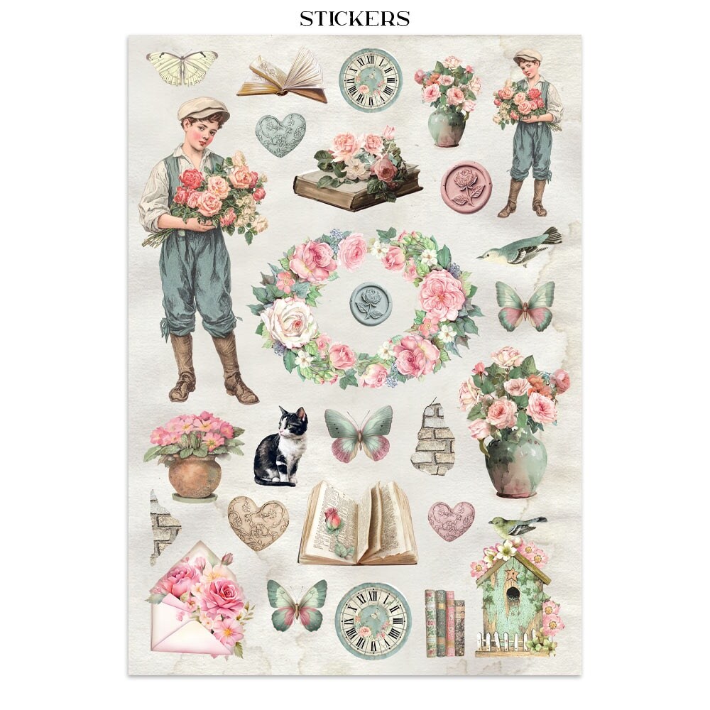 Stamperia Junk Journal Stickers, Cut-outs & Backgrounds-House of Roses