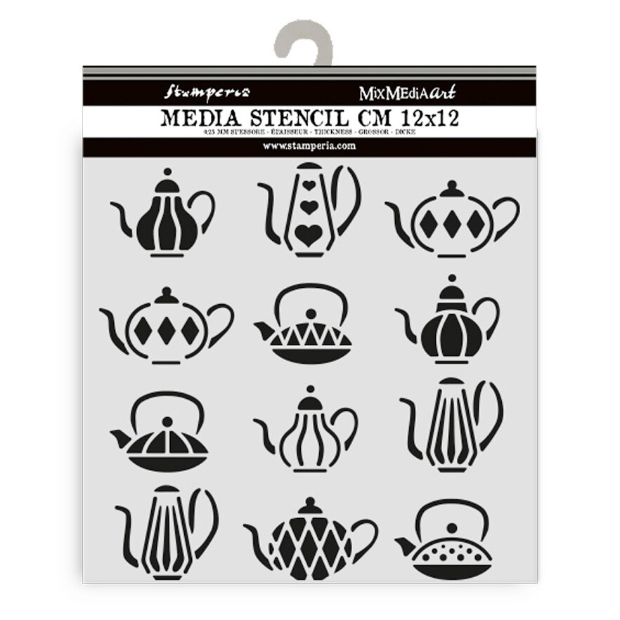 Stamperia Stencil 4.72"X4.72"-Alice In Christmas Tea Pots