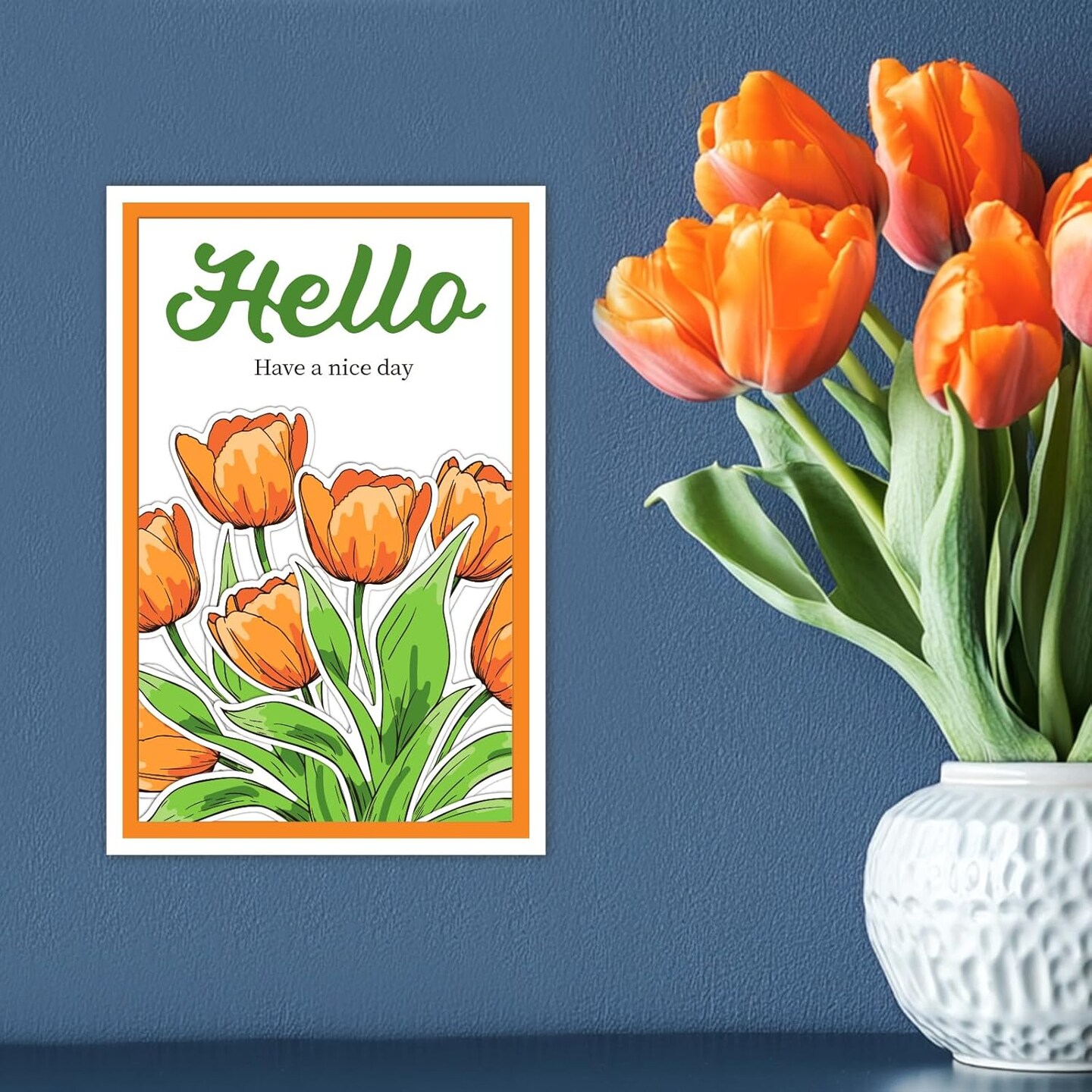 Stamps and Dies for Card Making, Mother's Day Tulip Stamps Die Cut Stencils Clear Stamps Set Layering PET Coloring Stencil