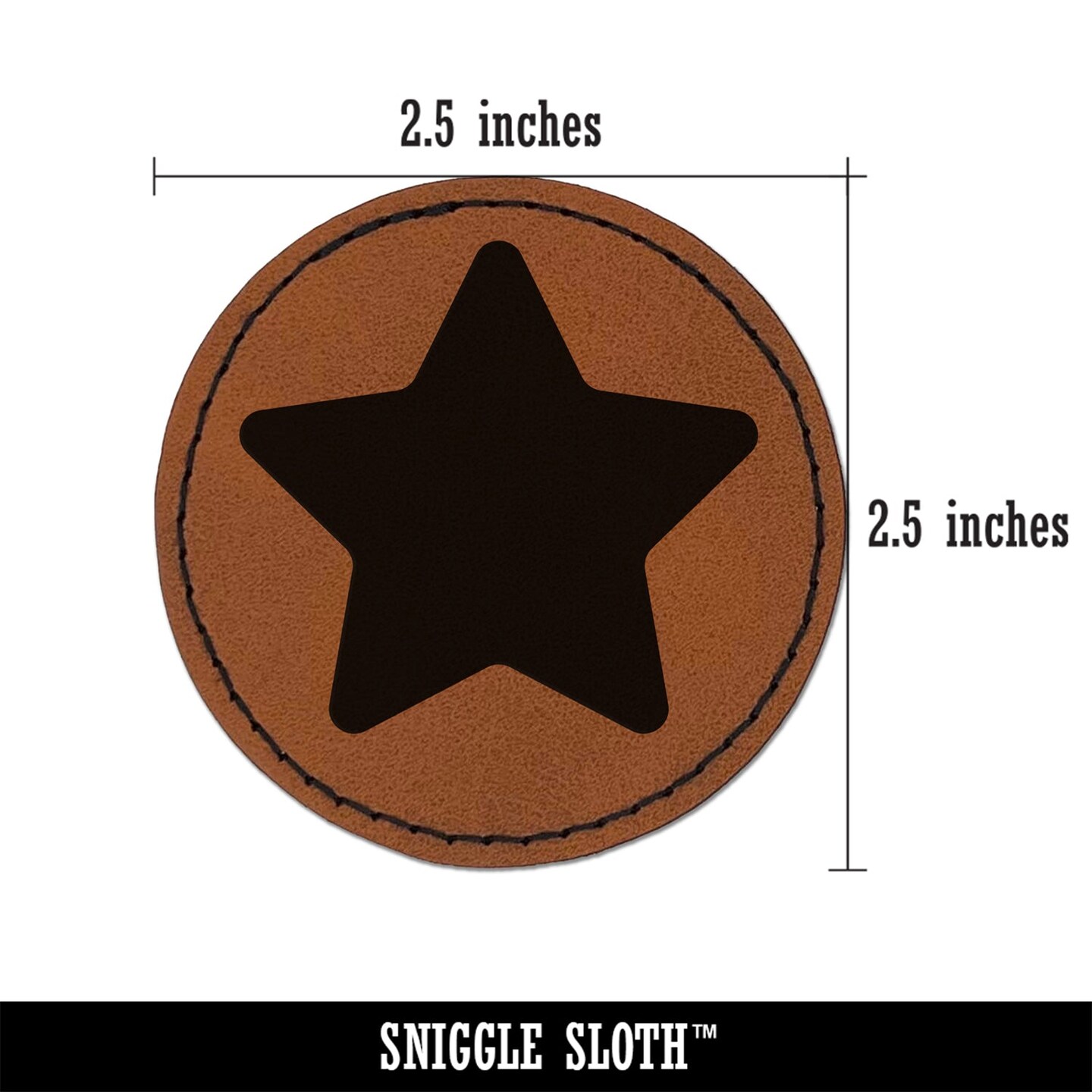 Star Curved Points Round Iron-On Engraved Faux Leather Patch Applique - 2.5"
