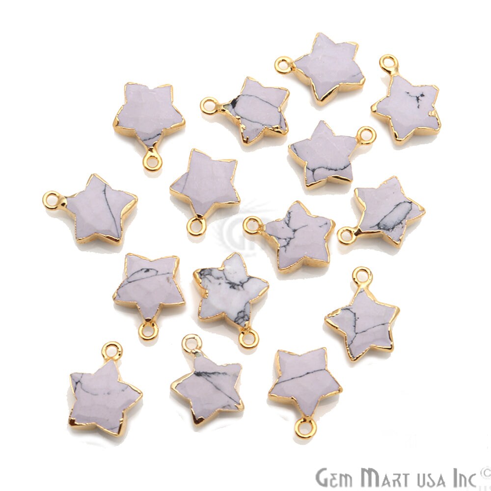 Star Gemstone Connector, Gold Electroplated Natural Gem, Single Bail DIY Jewelry Pendant, 16X14mm, GemMartUSA (50045)