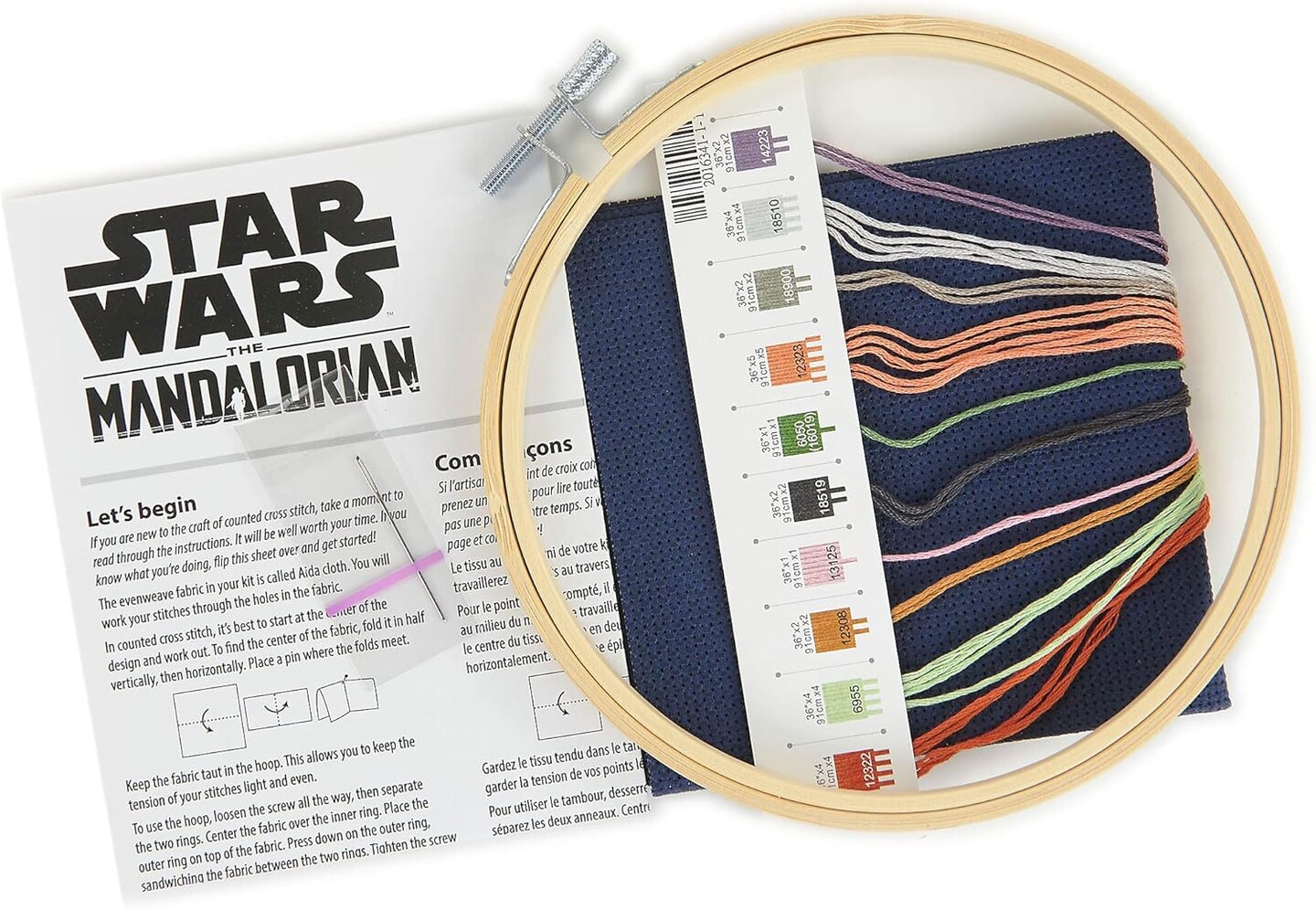 Star Wars The Mandalorian Grogu Counted Cross Stitch Kit, 6" D, 14 Cnt. Navy Aida, 5pcs