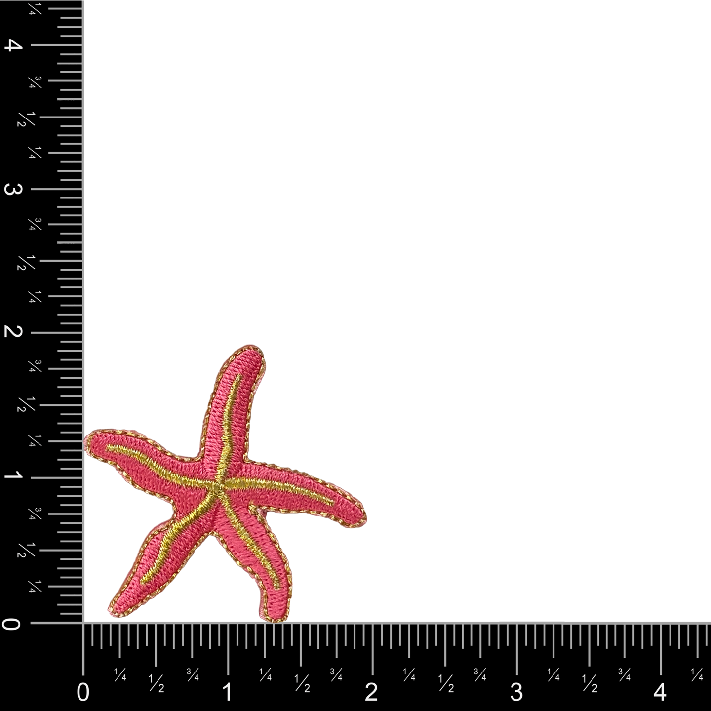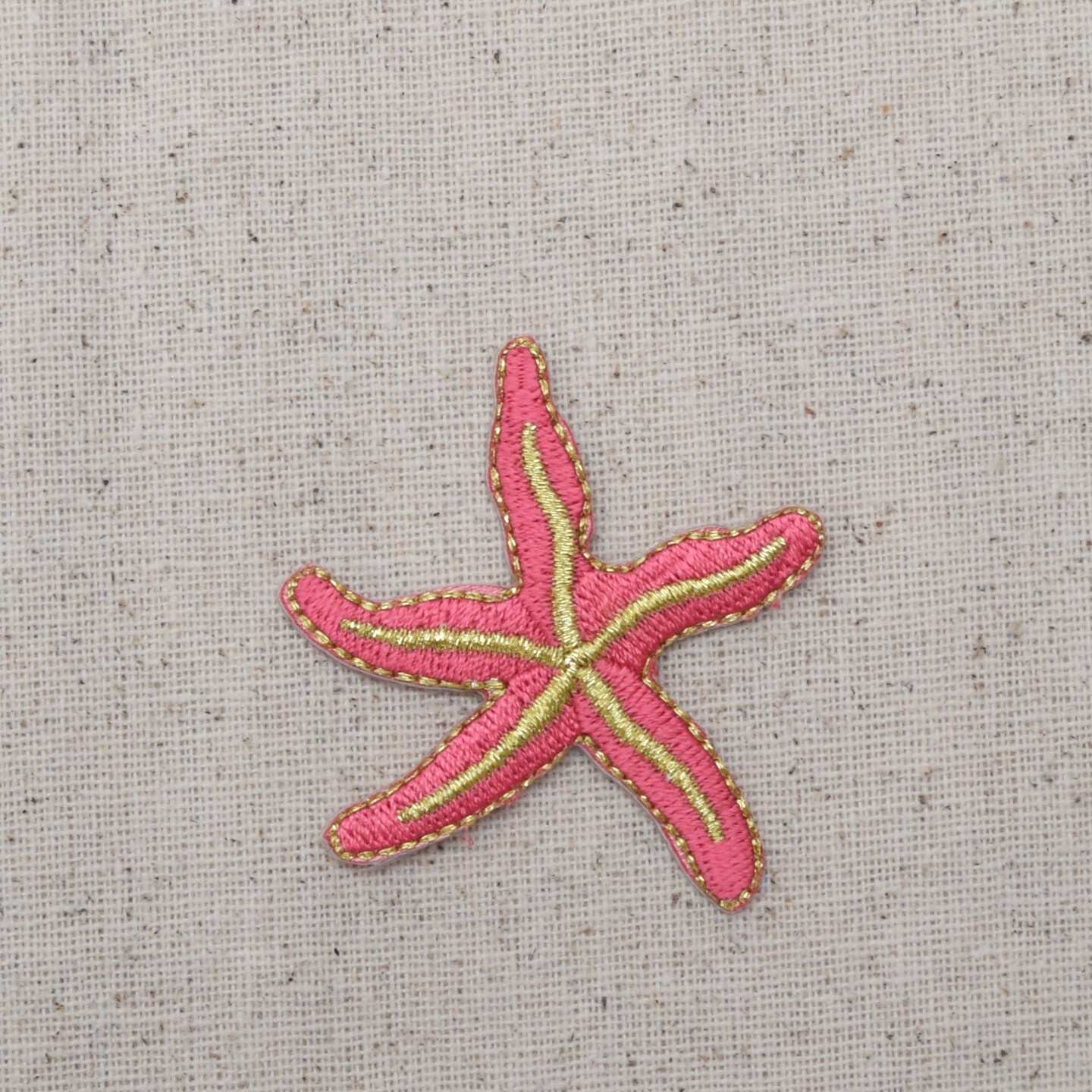 Starfish - Pink/Gold Embroidered, Iron on Patch
