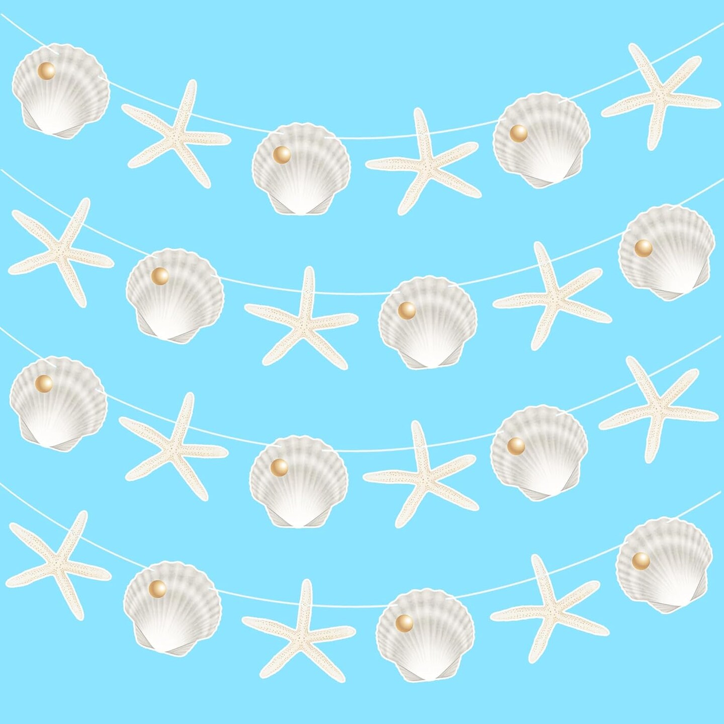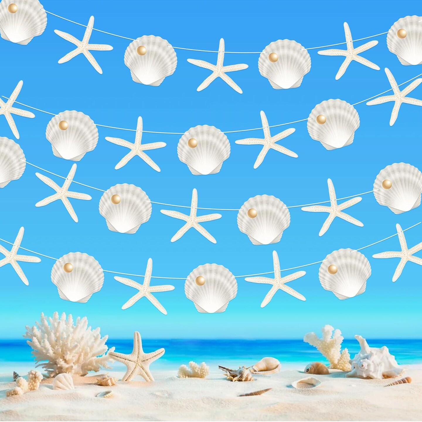 Starfish Sea Shell Banners 4PCS Coastal Beach Party Decorations