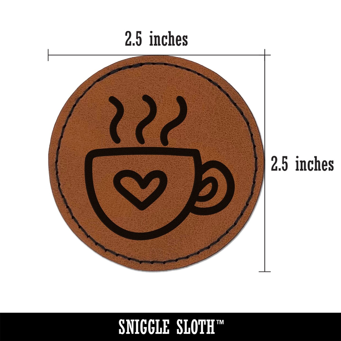 Steaming Hot Coffee Mug Cup with Heart Round Iron-On Engraved Faux Leather Patch Applique - 2.5"