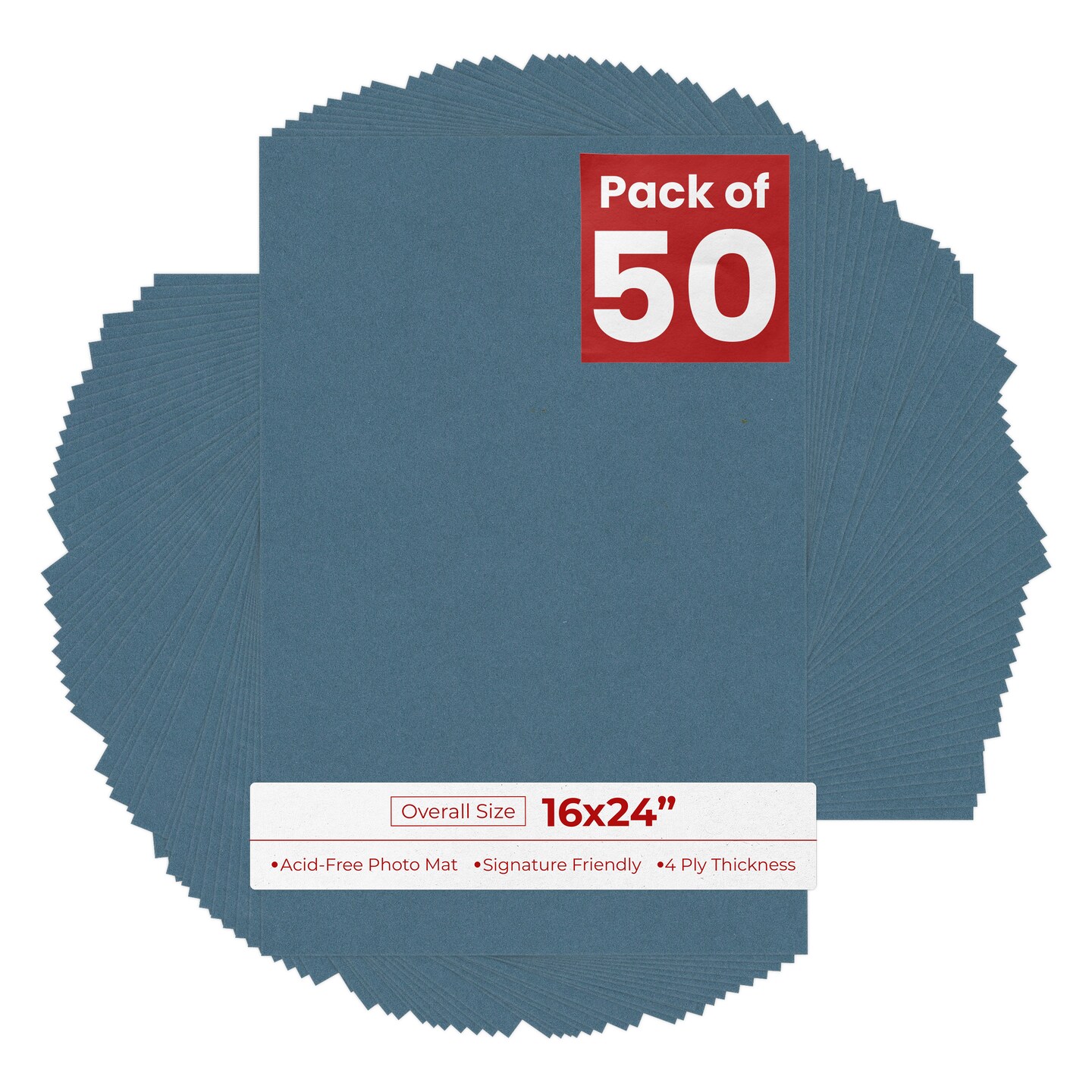 Steel Blue 16x24 Uncut Mat Board - Blank Sheets, No Opening