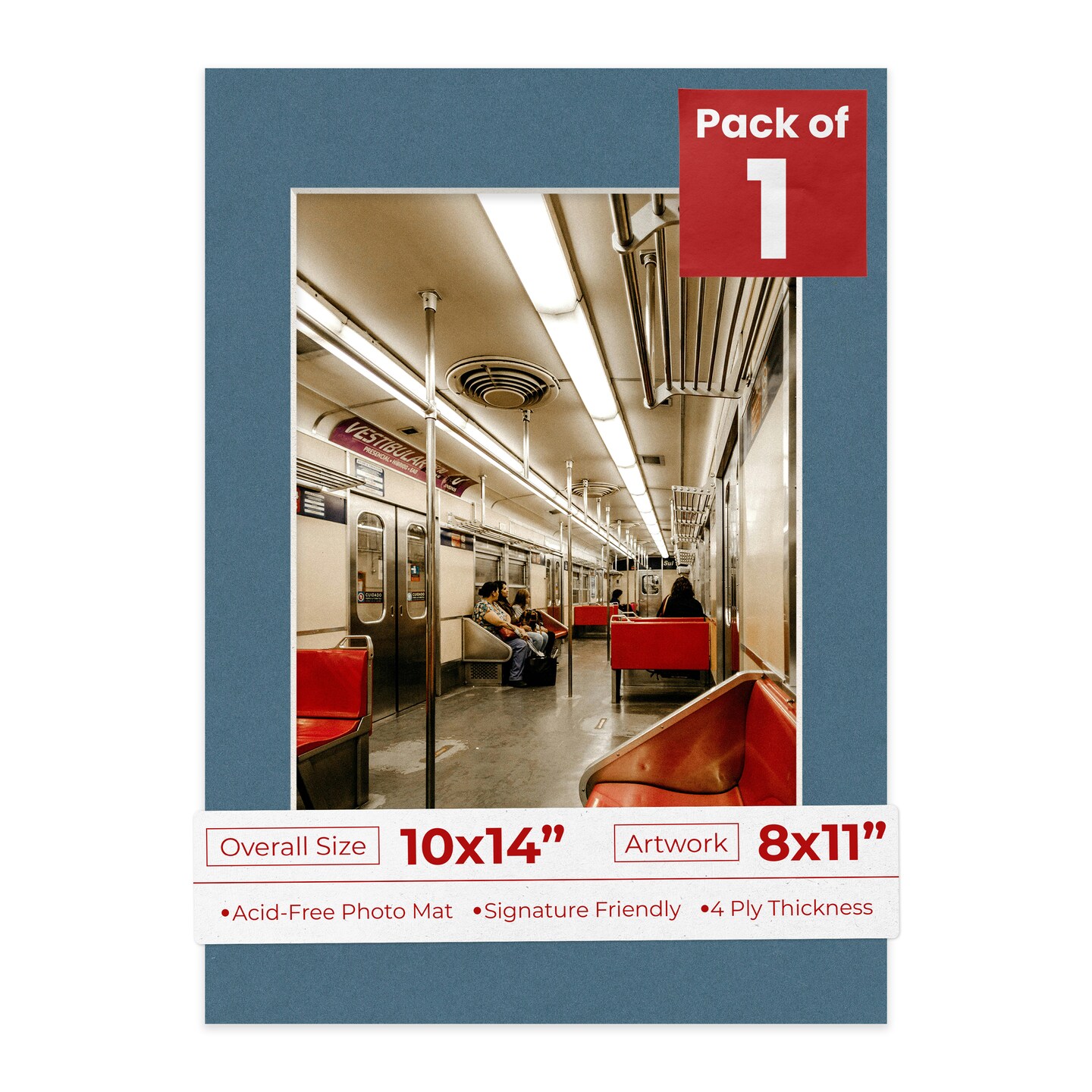 Steel Blue Mat Board for 10x14 Frames - Fits 8x11 Photos