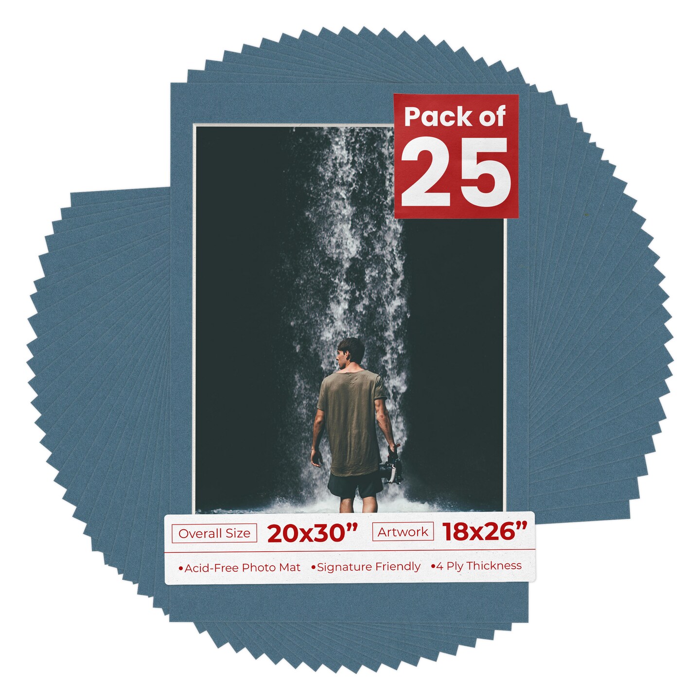 Steel Blue Mat Board for 20x30 Frames - Fits 18x26 Photos