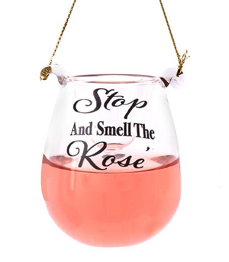 Stemless Liquid Wine Glass Ornament - Stop and Smell the Rosé