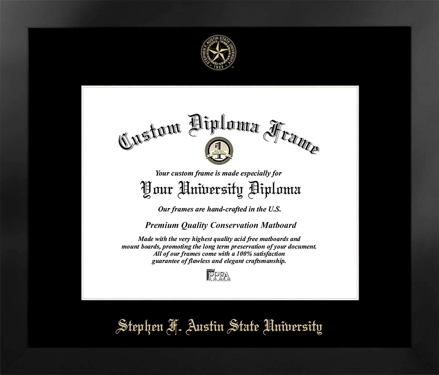 Stephen F Austin 14w x 11h Manhattan Black Single Mat Gold Embossed Diploma Frame with Bonus Campus Images Lithograph (value savings at $59)