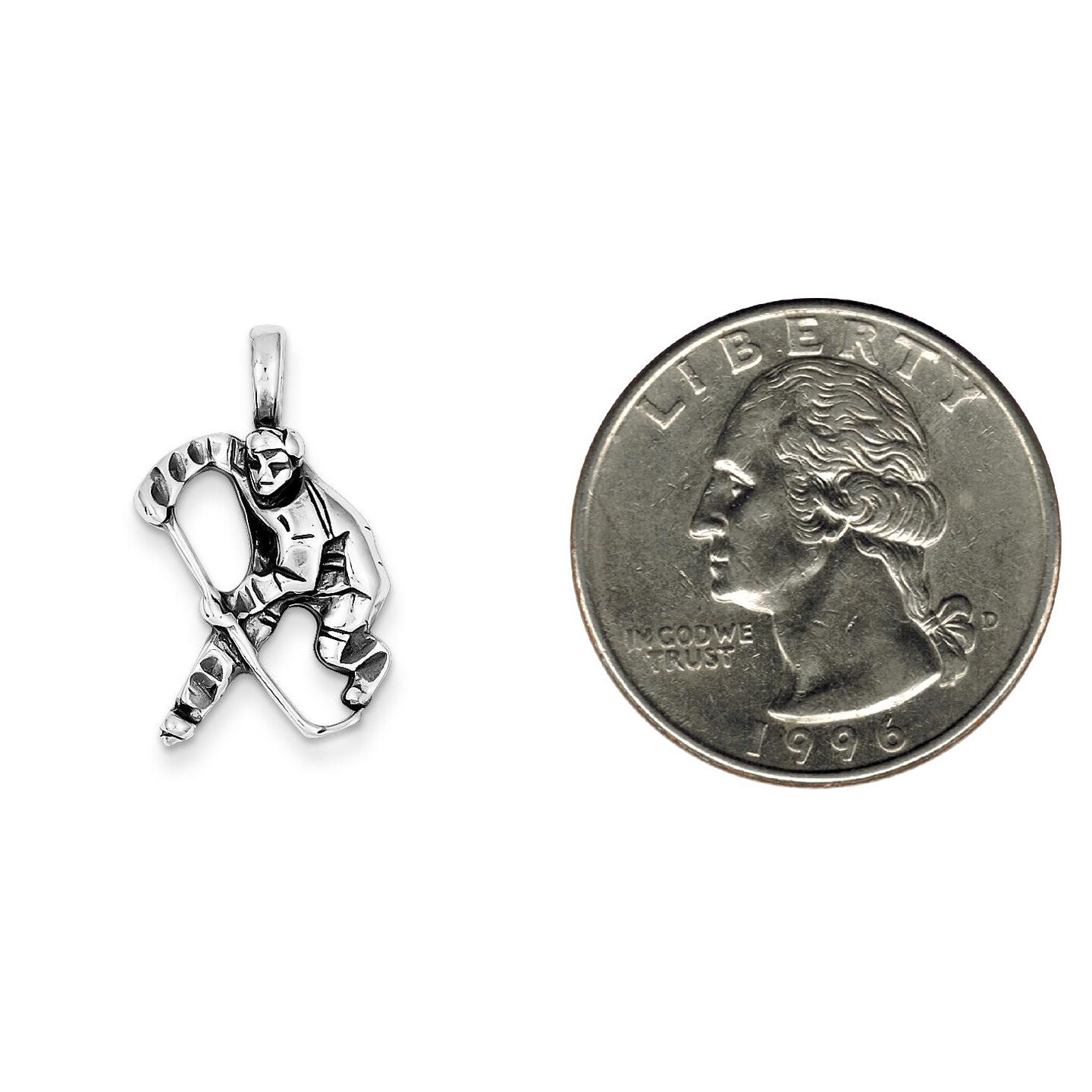 Sterling Silver Antiqued Hockey Player Charm Pendant Jewerly 25mm x 15mm