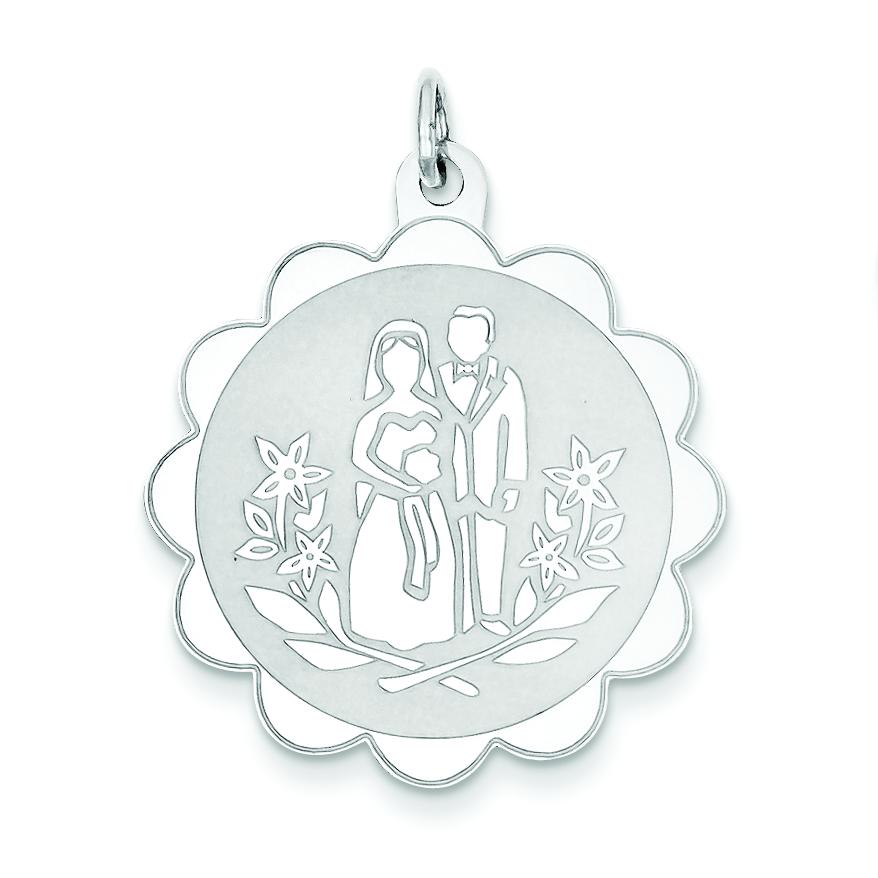 Sterling Silver Bride & Groom Disc Charm Love Jewelry 33mm x 26mm