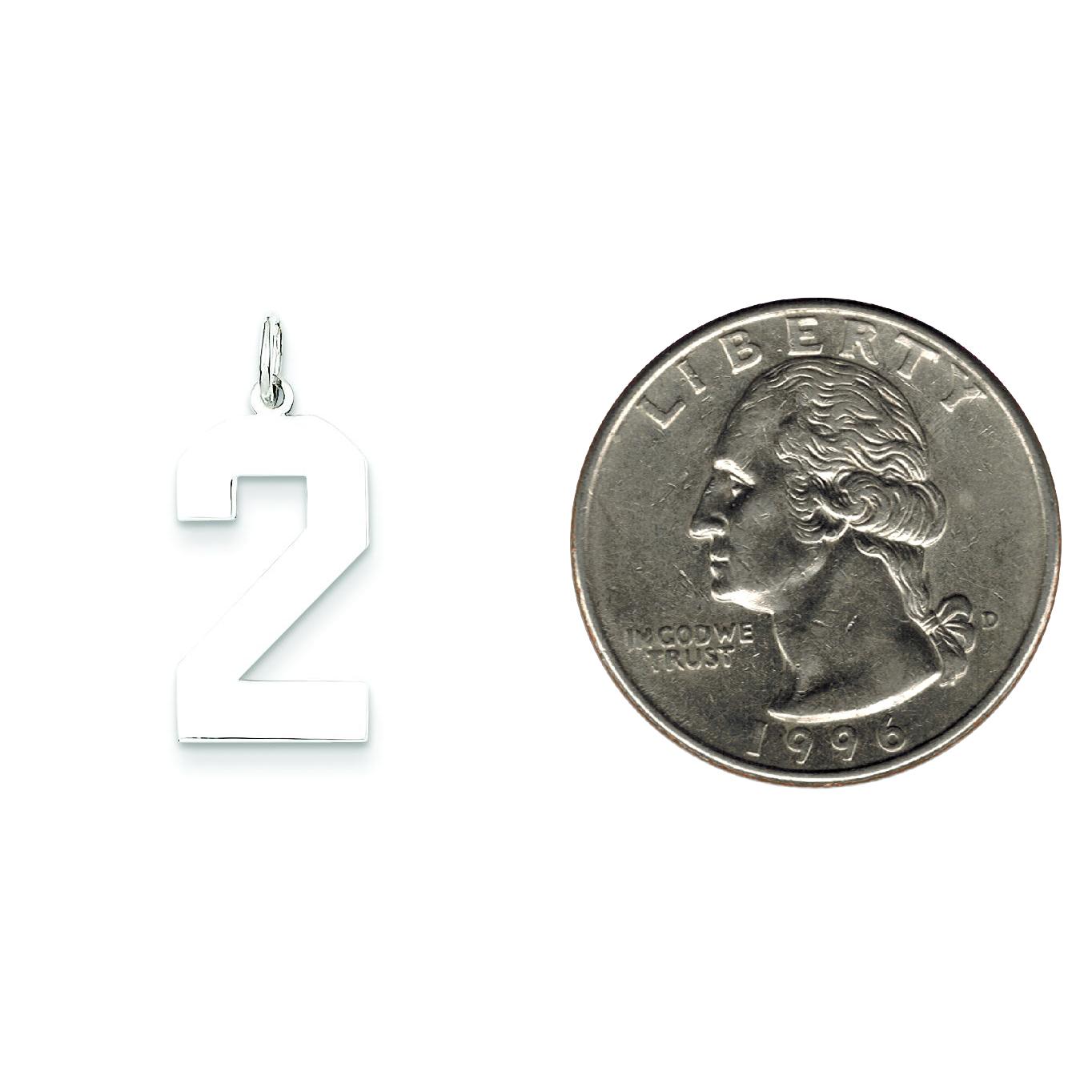 Sterling Silver Large Polished Number 2 Charm Pendant Jewerly 24mm x 10mm