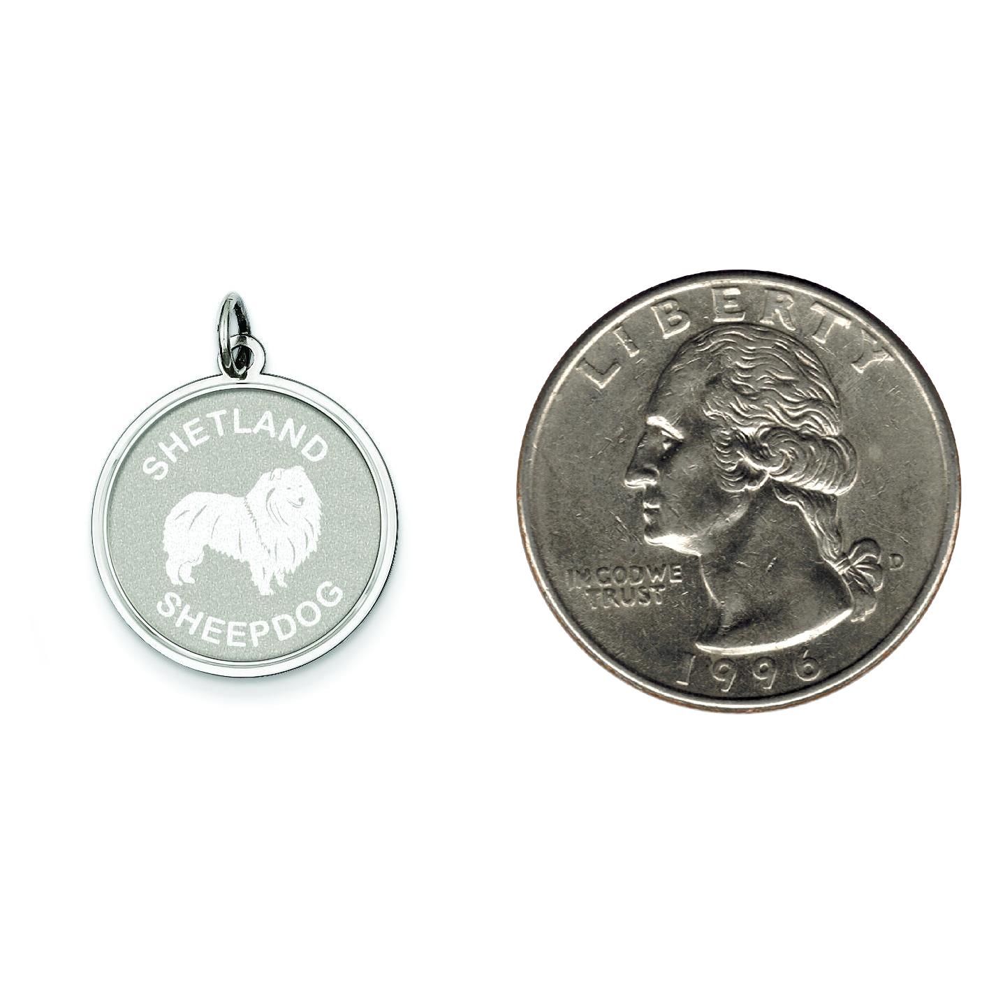 Sterling Silver Shetland Sheepdog Disc Charm Pendant Jewerly 26mm x 19mm