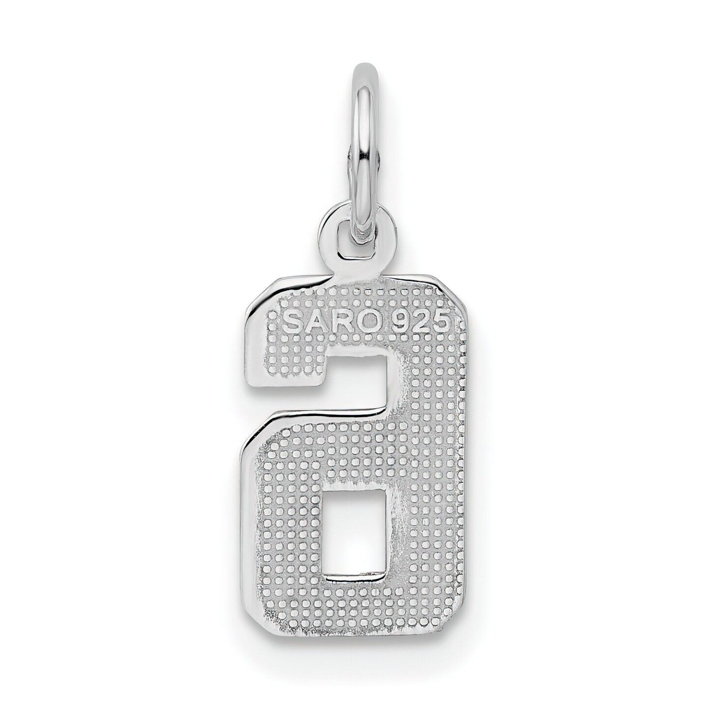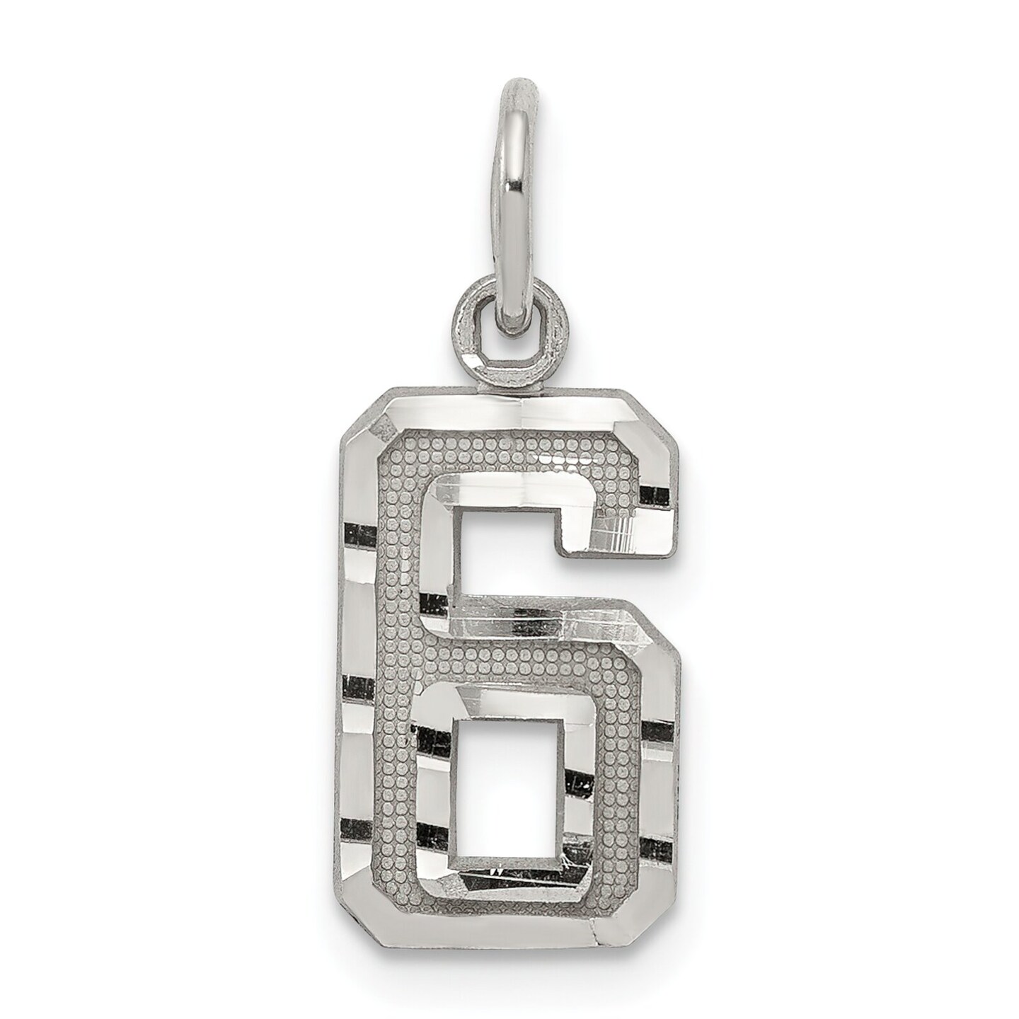 Sterling Silver Small #6 Charm Number Pendant Jewelry 20mm x 7mm