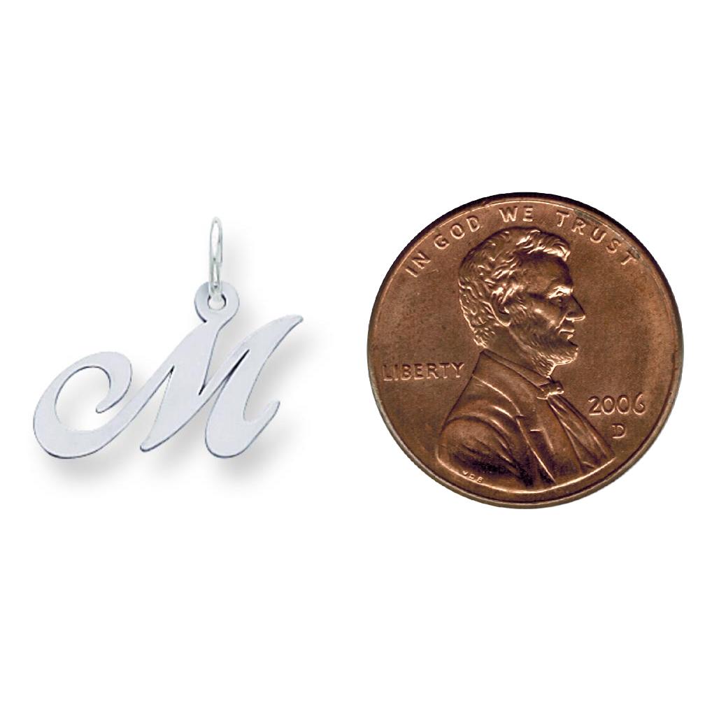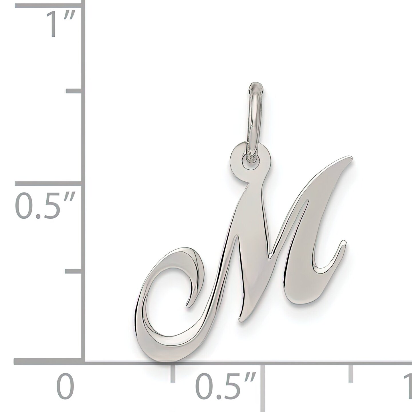 Sterling Silver Small Fancy Script Initial M Charm Jewerly 16mm x 10mm