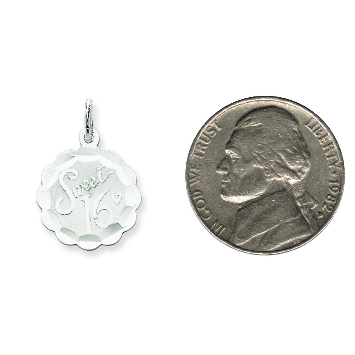 Sterling Silver Sweet Sixteen Disc Charm Birthday Jewerly 22mm x 16mm