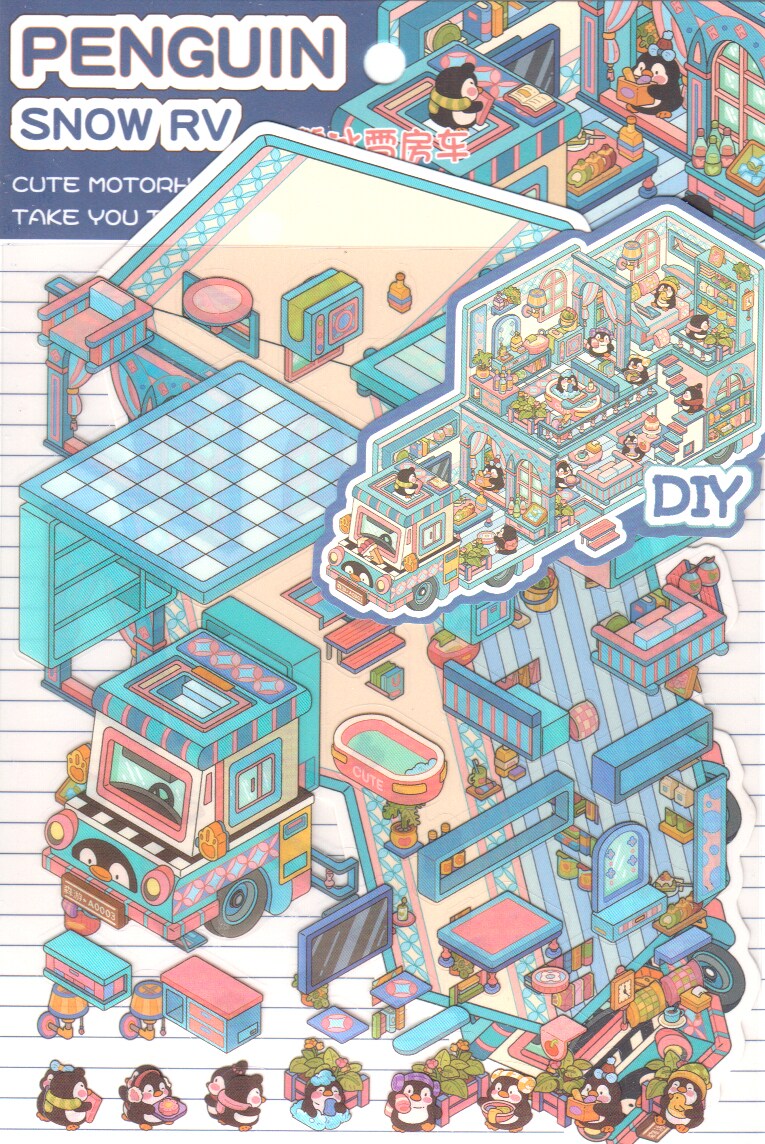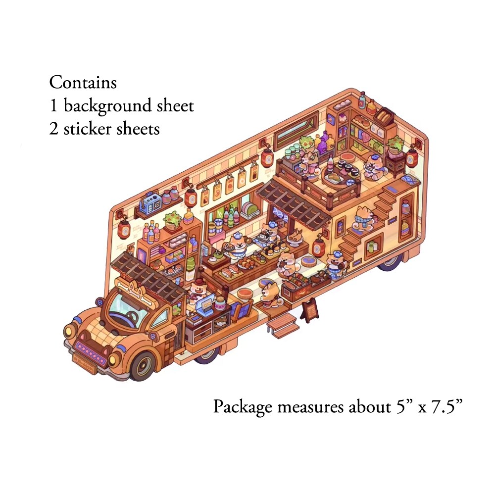 Sticker Scene Pack of 4 Cute Vehicles, Isometric Sticker Sets plus Tweezers, Adorabilities