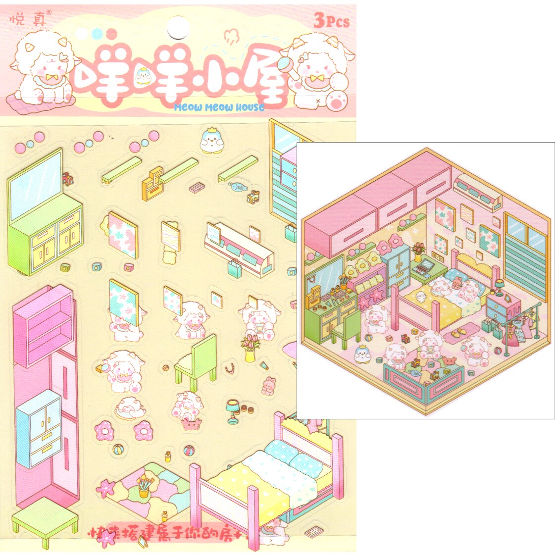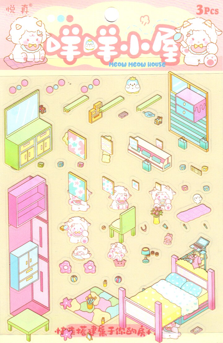 Sticker Scene Set, Sheep Bedroom, Isometric Room Stickers Activity, Adorabilities