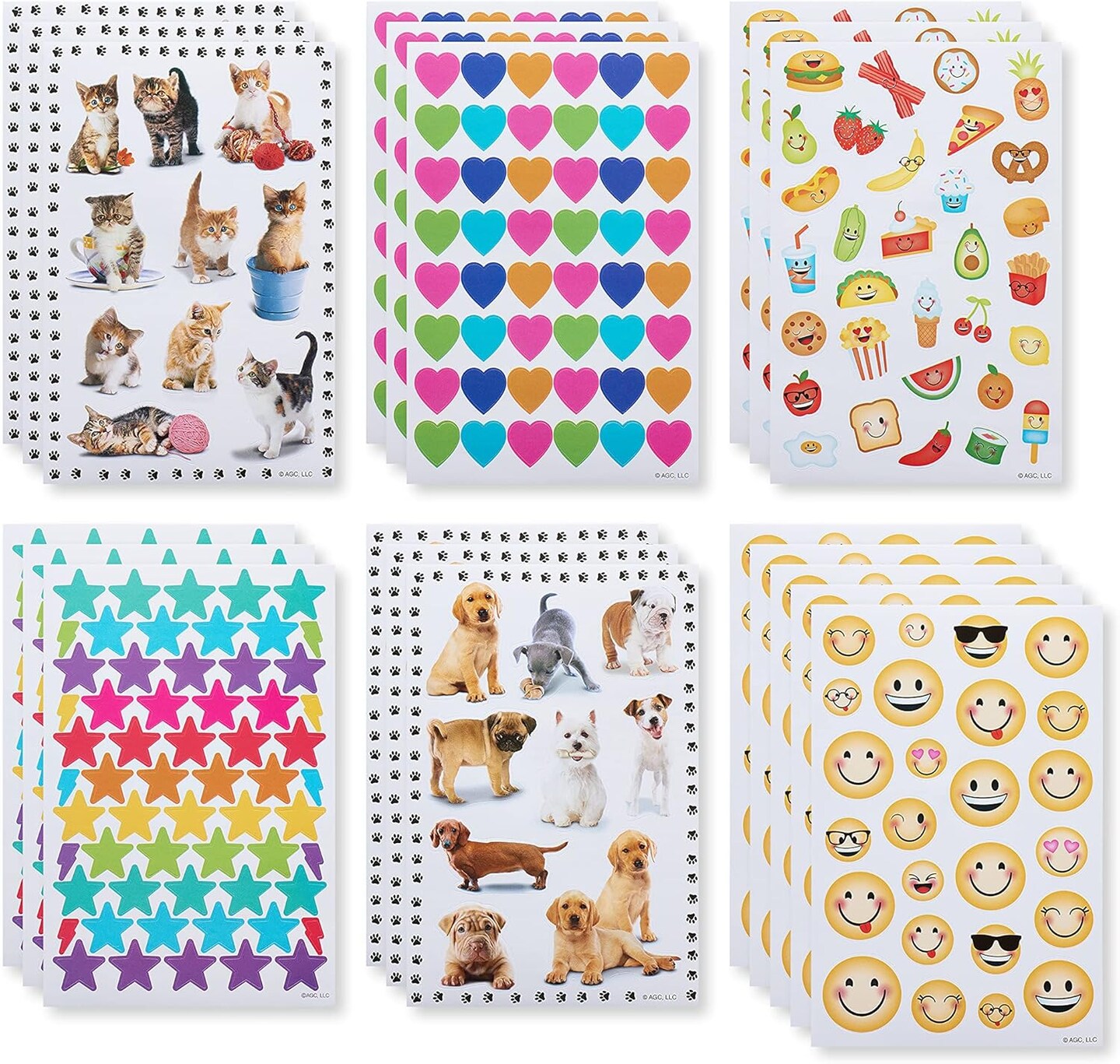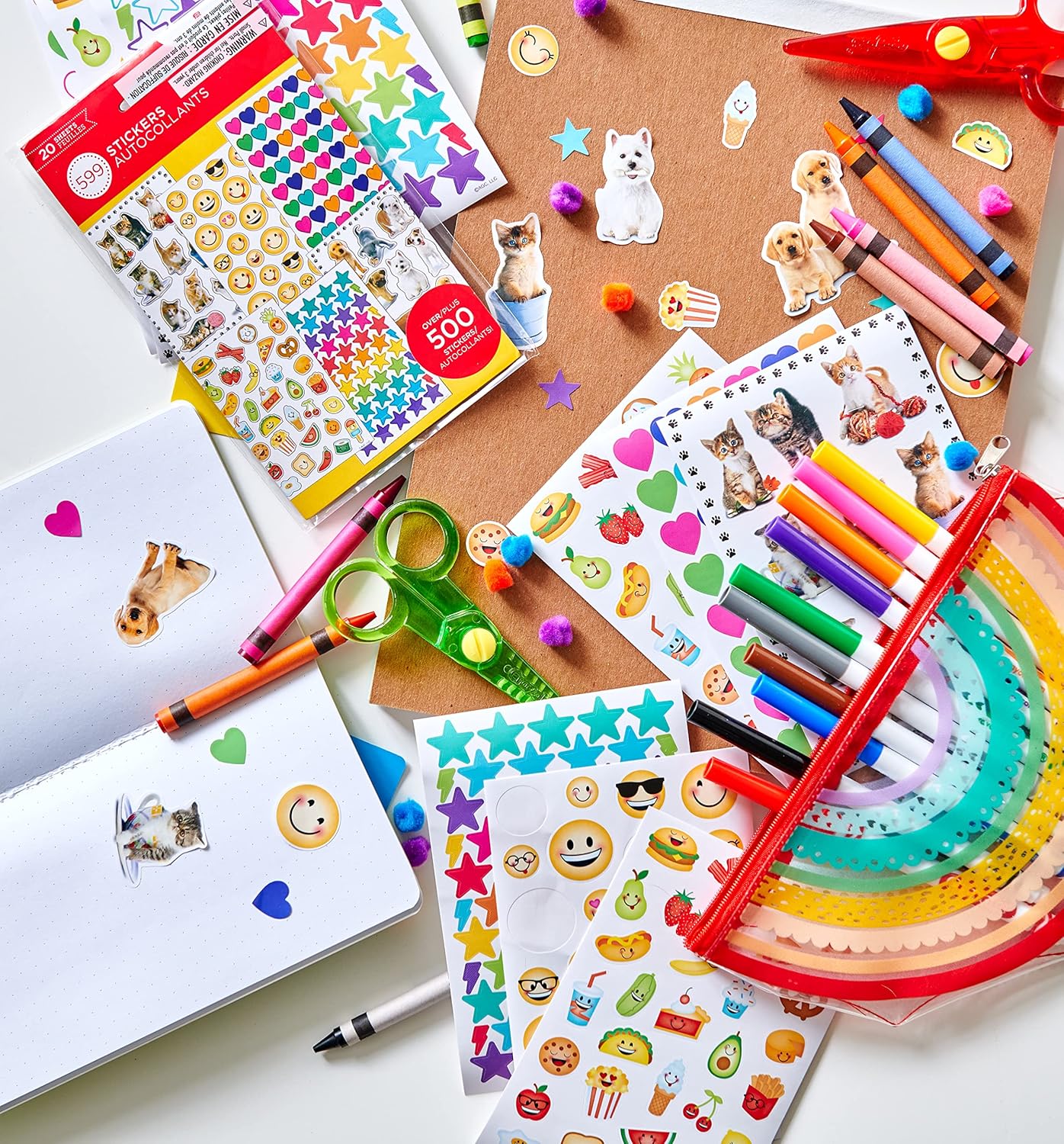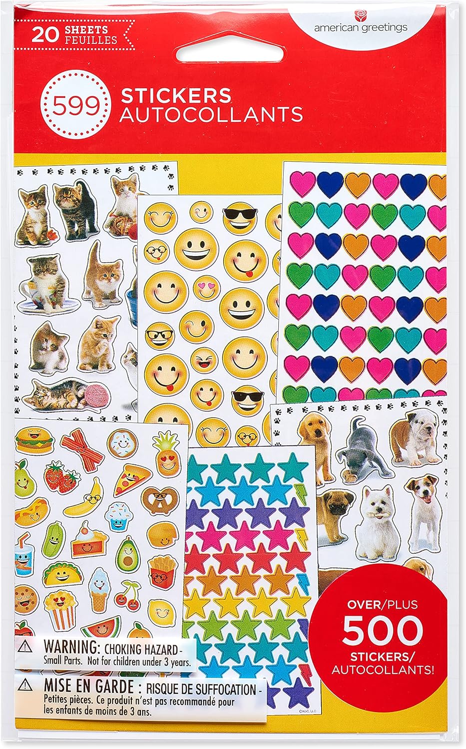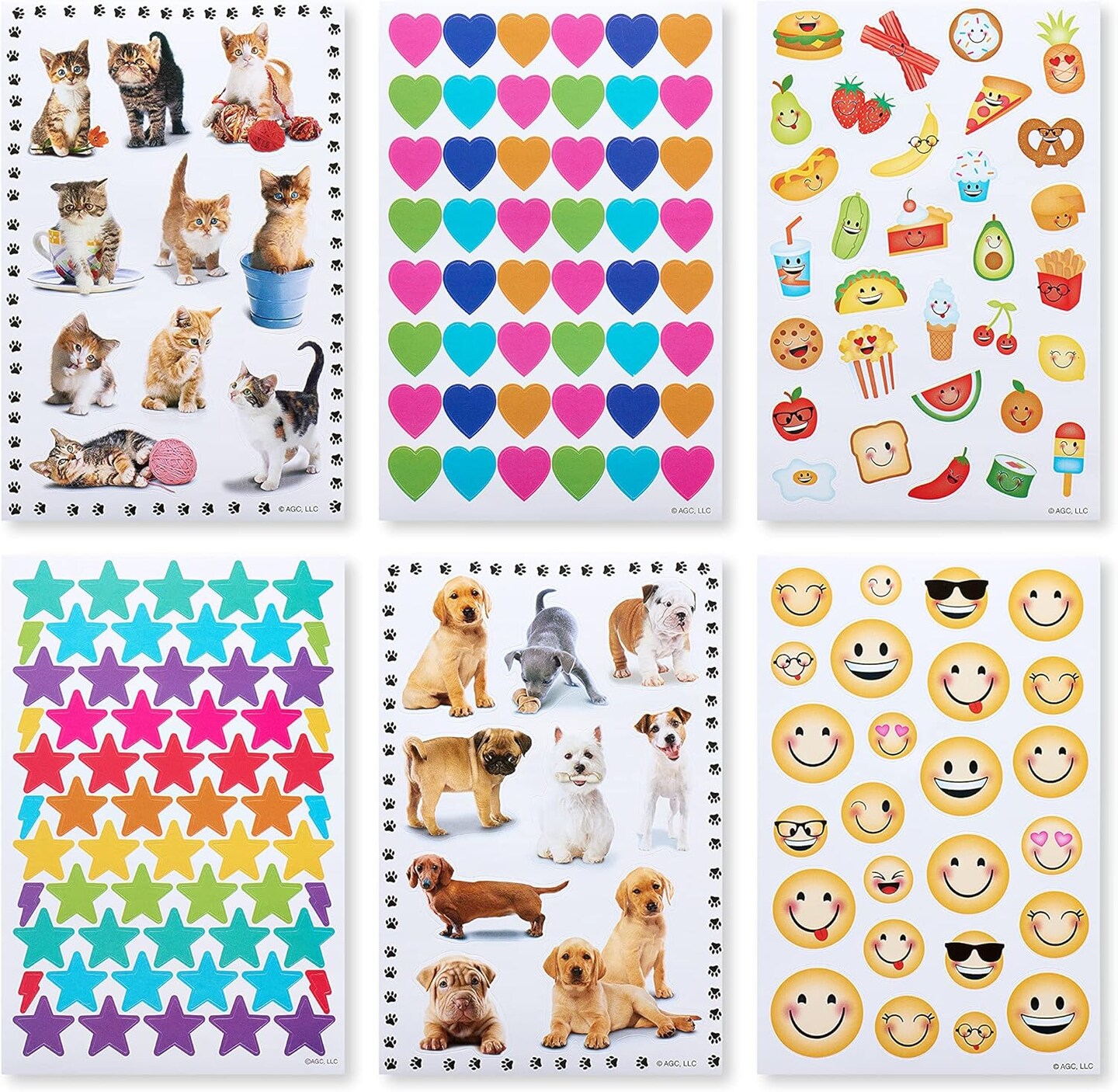 Stickers for Kids, Assorted Shapes, Animals and Smiley Faces (599 Stickers)
