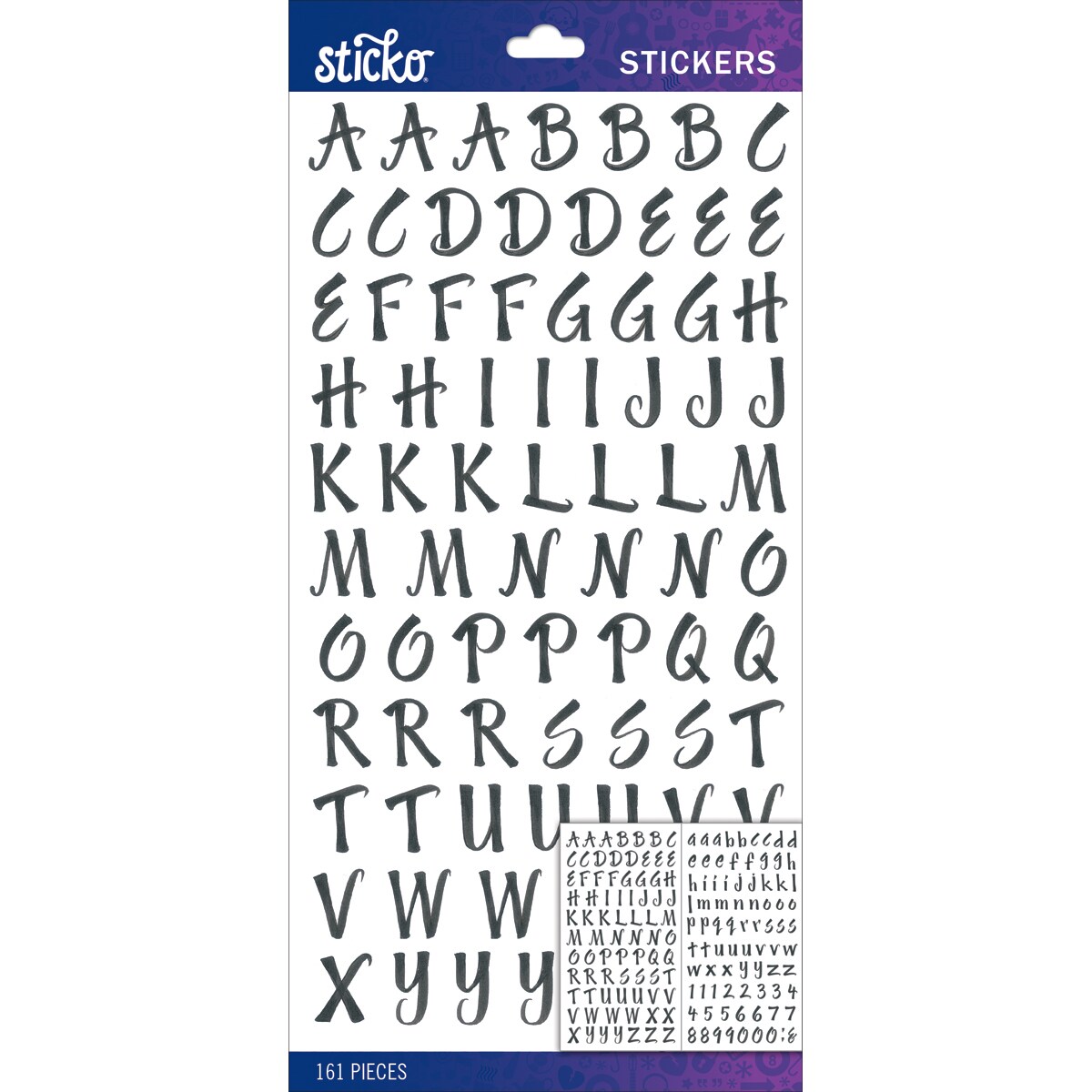 Sticko Alphabet Stickers - Brush Small, Black, 161pcs
