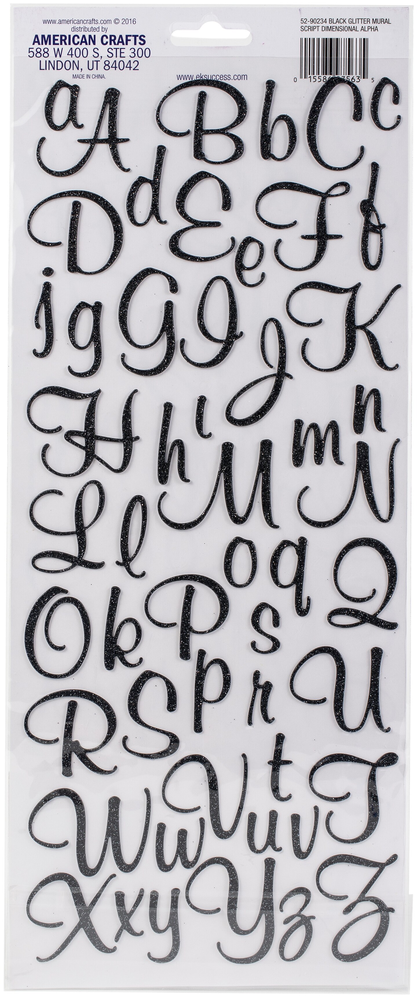 Sticko Alphabet Stickers - Script, Black Glitter, 104pcs