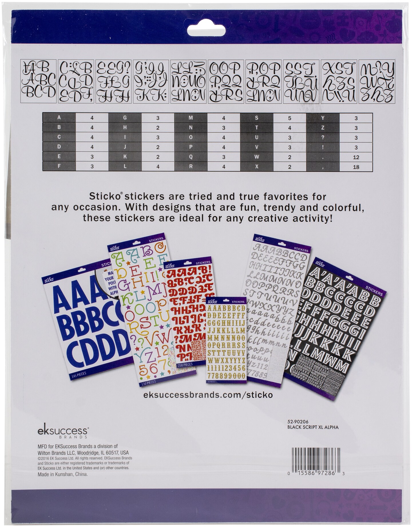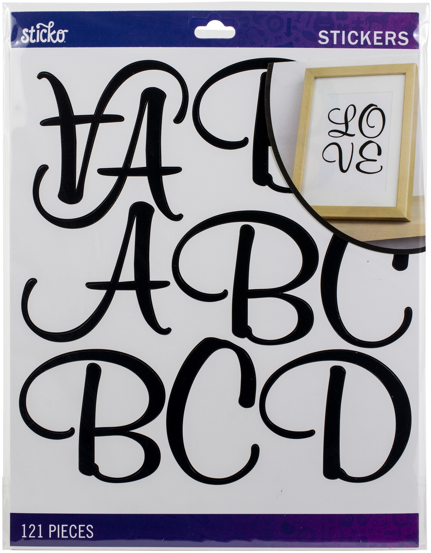 Sticko Alphabet Stickers - Script Extra Large, Black, 121pcs