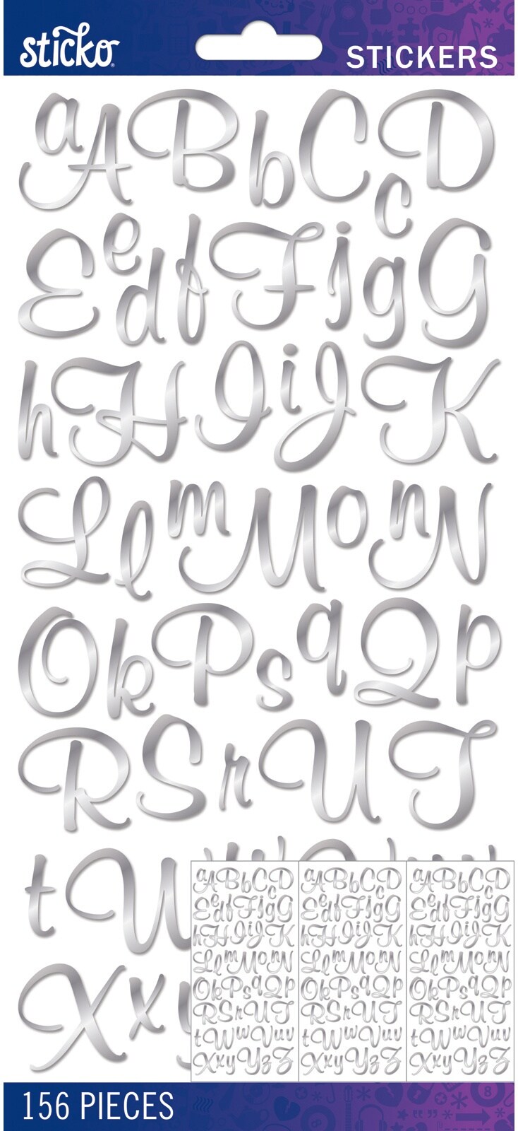 Sticko Alphabet Stickers - Script Medium, Silver Foil, 156pcs
