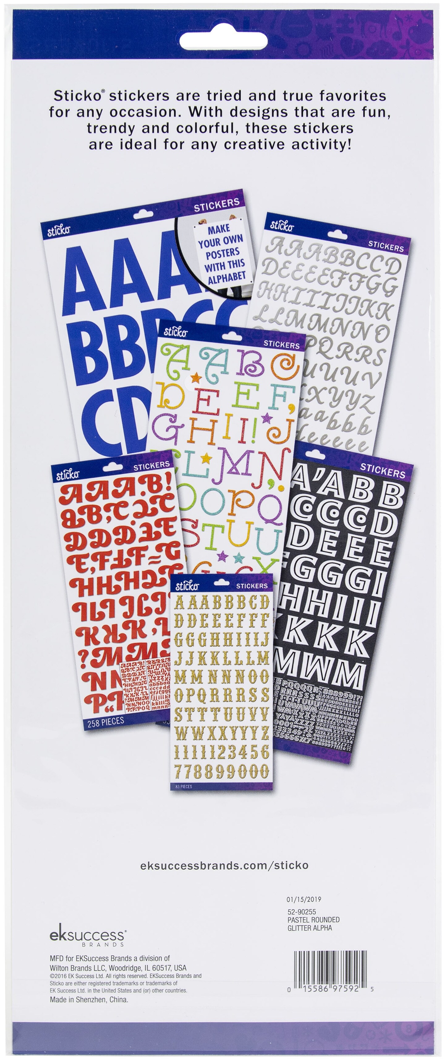 Sticko Alphabet Stickers-Pastel Rounded Glitter