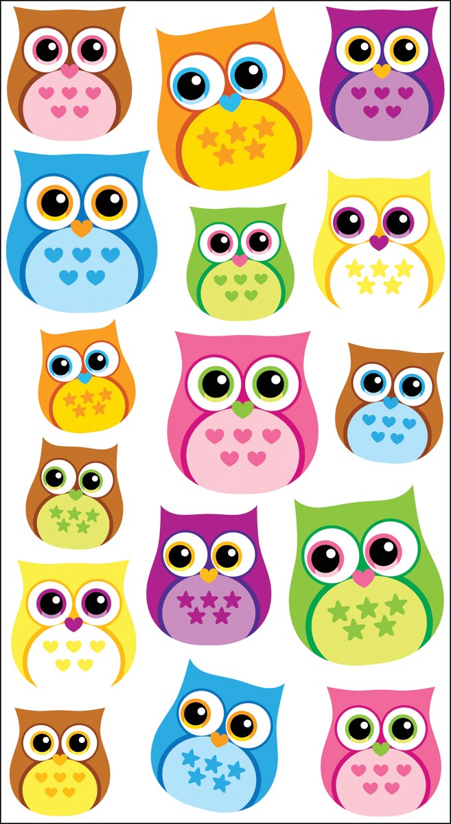 Sticko Dimensional Stickers - Colorful Owls, 16pcs