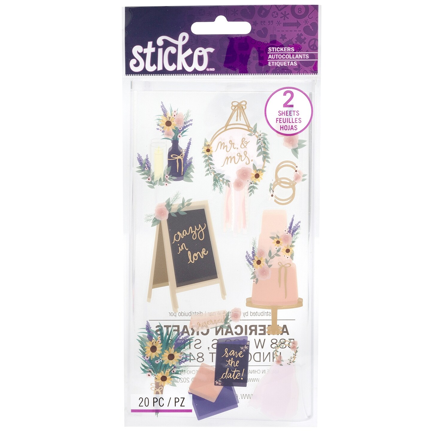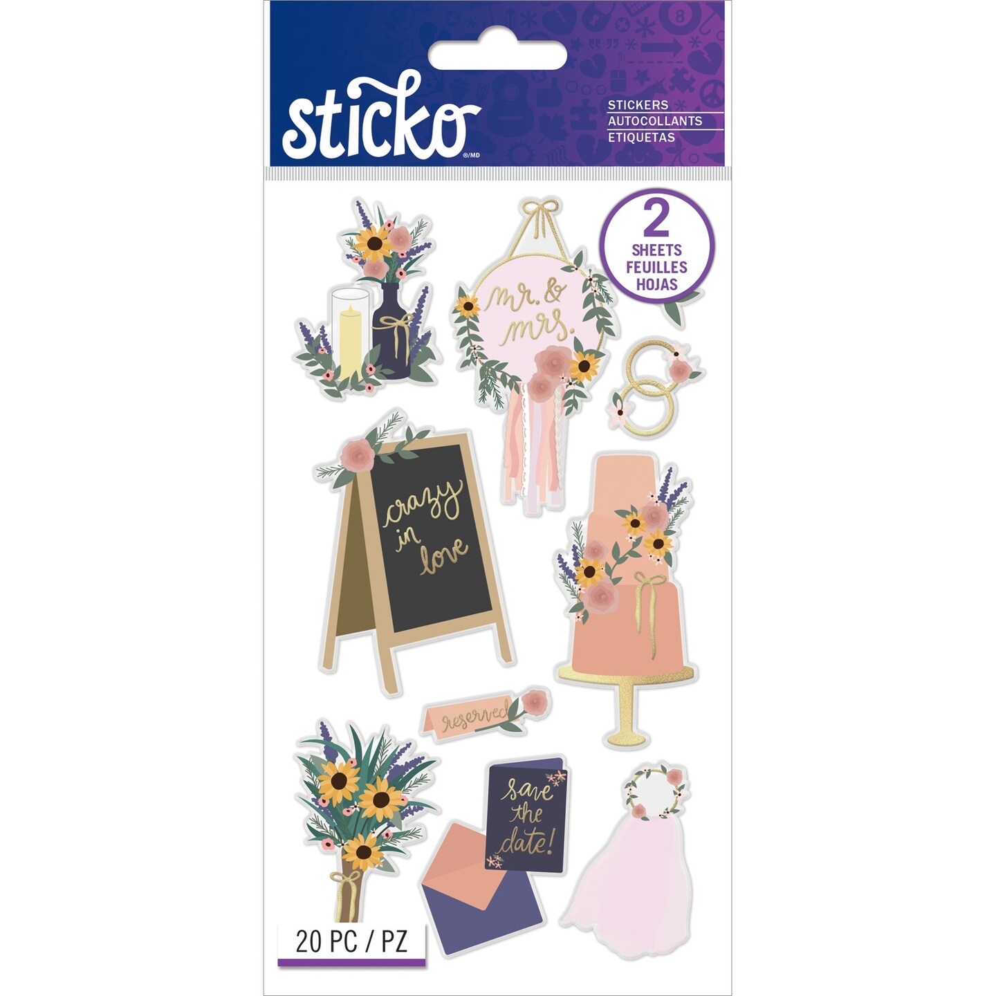 Sticko Flat Stickers-Boho Wedding, 20/Pkg